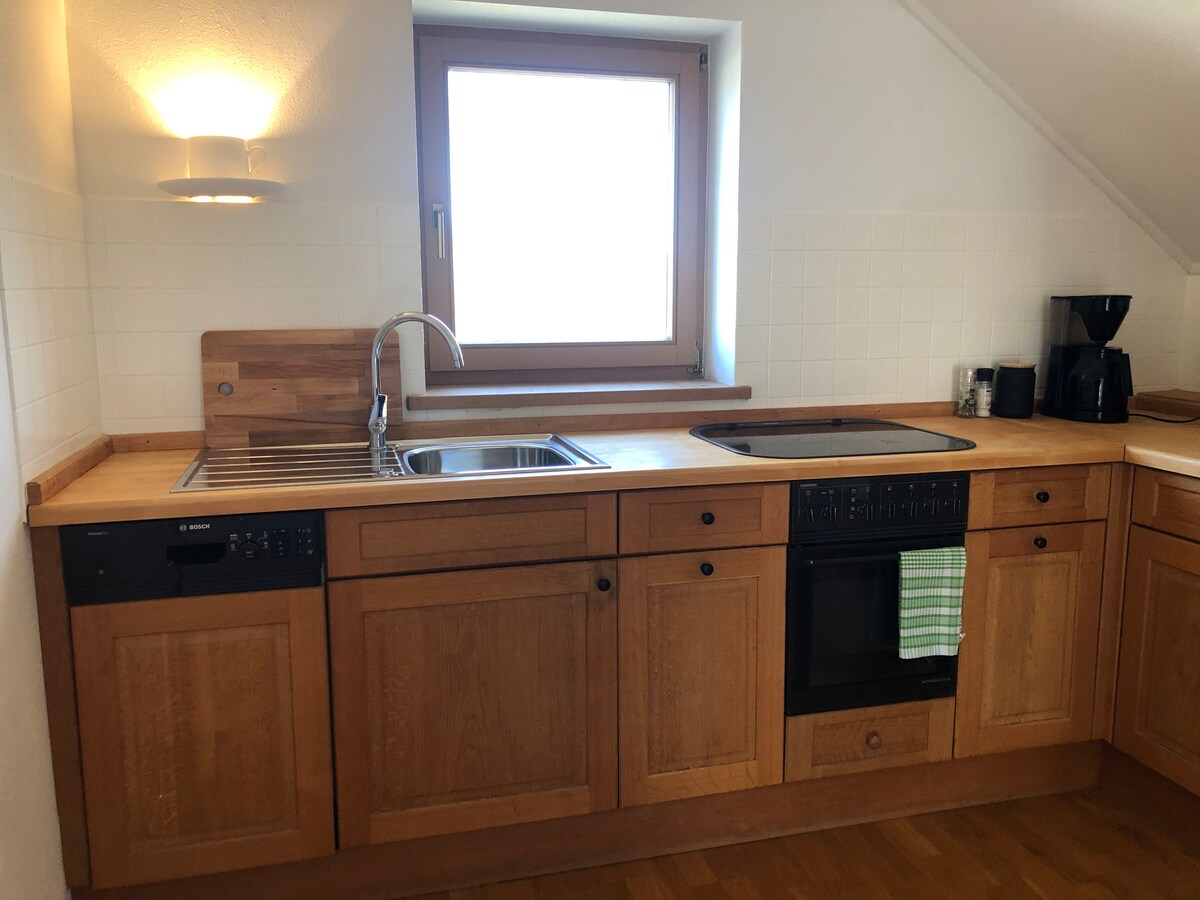 2 nəfərlik mənzil Yalnız böyüklər (yalnız böyüklər) Kasa Karita Erdinqin cənubunda (təxminən 15 dəq) sevərək və yüksək keyfiyyətli mebellə təchiz edilmiş mənzildir. Bunun üçün idealdır: - Münhendə ticarət sərgisinə gələnlər - Riem - Terme Erding - Gözləmə rejimində pilotlar və uçuş iştirakçıları - Qolfçular Kasa Karita sizə nə vaxtsa ehtiyacınız ola biləcək hər şeylə yaxşı təchiz olunmuş mətbəx təklif edir. Cəlbedici qutusu olan yataq otağı yay çarpayısı, masa ilə makyaj güzgüsü, çəkməcədə açılan Technisat TV xromu!