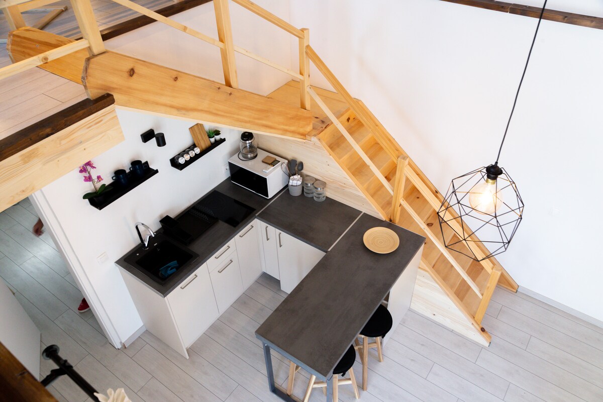 55 m2-lik müasir təchiz olunmuş taxta evlər. Evdə yataq otağı, hamam otağı, mətbəx, qonaq otağı, terras və şərikli barbekü sahəsi var. Pulsuz Wi-Fi, IPTV, Netflix, parkinq. Göyərtə stulları və çətirləri olan açıq hovuzdan istifadə edin. Əmlakdan 400 m məsafədə, şəhər mərkəzindən 2 km, ən yaxın mağaza 700 m, restoran 600m.