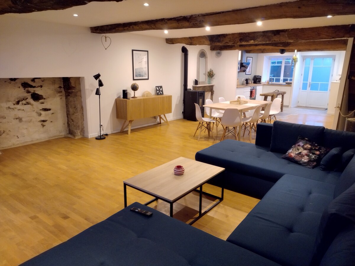 ★ UNIQUE ★ This charming Breton cottage, cozy and renovated by a heritage architect, offers a peaceful setting in the countryside, close to the forest and the seaside. Perfect for nature and stargazing lovers, it features a secluded outdoor bathtub, direct access to a private woodland, and a warm ambiance. Ideal for exploring Brittany and unwinding, this spot combines authentic charm and modern comfort for an unforgettable stay.
