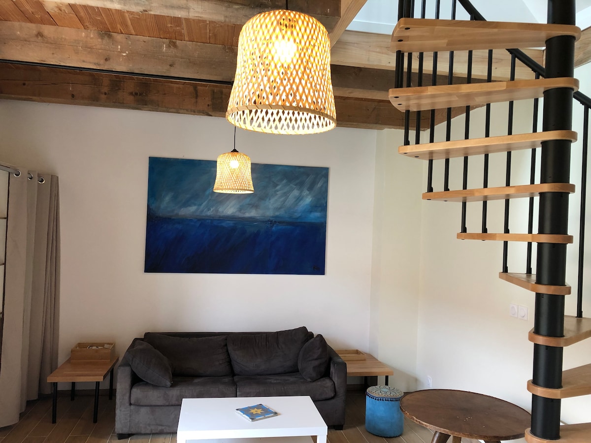 Studio attenant à jolie maison Bretonne avec terrasse Il se compose d'un espace salon, coin cuisine ainsi que d'une salle d'eau (douche et toilettes) au rez de chaussé. La grande chambre à l'étage est accessible par un escalier. Elle est composée d'un lit de dimension 160x200, rangements, petit canapé et TV. Espace extérieur accessible avec mise à disposition d'un salon de jardin.