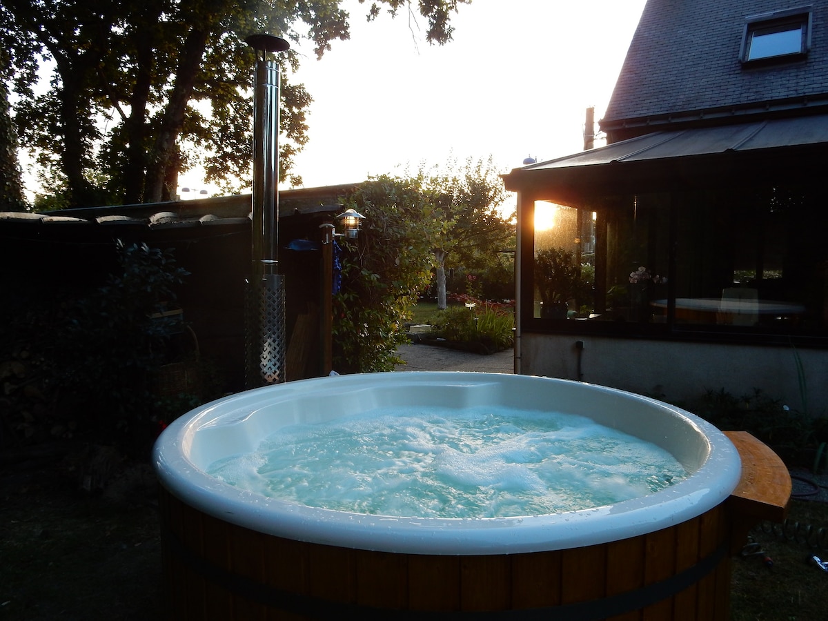 BREC 'H-də fasilə vaxtı olan bu füsunkar pavilyonda sizi aldadacaq hər şey var. Şəhərə və dənizə yaxın kənddə tənbəllik etmək. Auray qatar stansiyasından 2 dəqiqə, ekspress yoldan 2 dəqiqə, bütün mağazalar 5 dəqiqə, Sen-Qoustan limanından 10 dəqiqə, Vannesdən 20 dəqiqə. Morbihan körfəzinin incilərindən bir daş atın: Quiberon, adalar üçün iskele, Karnak və onun menhirs... Sahəsi 85 m2 olan tam təchiz olunmuş ev sadəcə çamadanlarınızı gözləyir. Böyük hasarlı bağ + 5 nəfərlik spa.