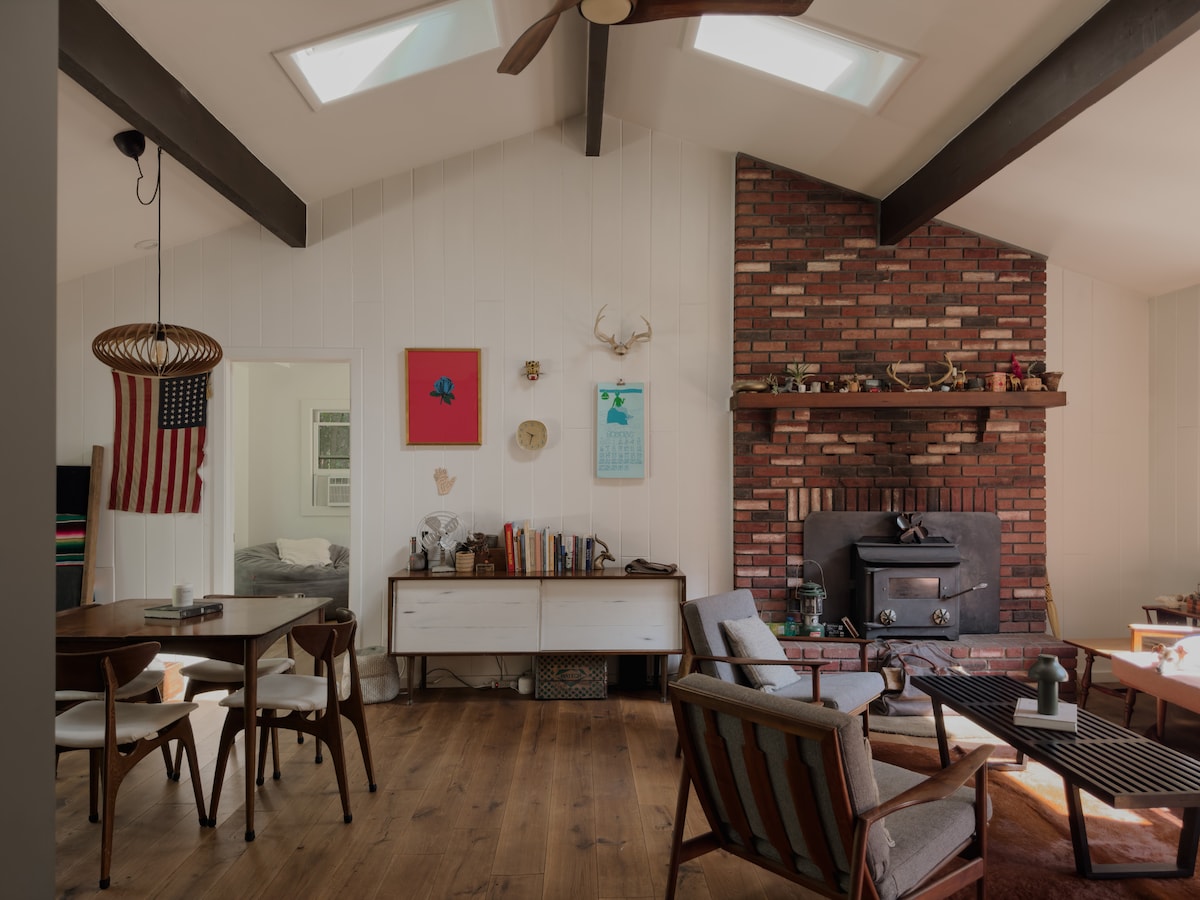 Bu gözəl dizayn edilmiş, çay kənarında yerləşən Katskill dağlarında kabinə Nyu-Yorkdan cəmi iki saatlıq məsafədədir. Çayın kənarında yerləşən ev geniş mənzərə pəncərələri və XX əsrin ortalarına xas ikonik modern mebellərlə təchiz olunub. Yapon sidr ağacından hazırlanmış cakuzi və odun sobası səhərlər və axşamlar rahatlıq yaradır. Frette yataq dəsti və vacib imkanlarla düşünülmüş şəkildə təchiz edilmiş bu ev kompromissiz istirahət üçün nəzərdə tutulub. Çayın səsi ilə oyanın, təbiətdə dincəlin və dərin yuxuya gedin. İt yönümlü və körpə üçün hazır.
