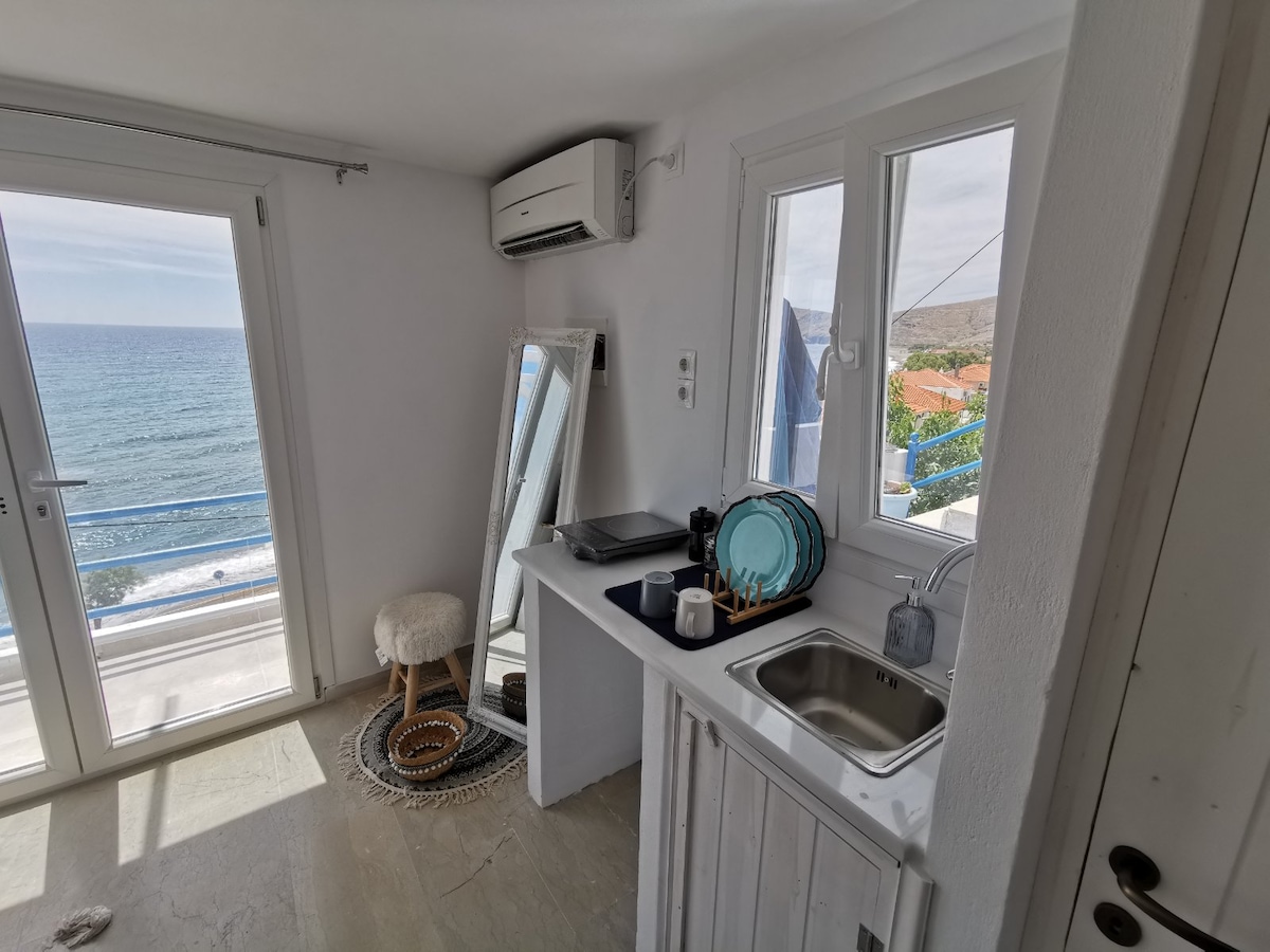 This is a 12sq.m. independent studio and It has a double build in bed. n the studio there is also a fully equipped kitchen with a coffee maker.There is a small balcony where you may enjoy your coffee watching the ocean. The studio is located in a quiet area at the beachfront of Eressos and it is around 10metres from the water .Also its 50metres away from the first taverna and shops.