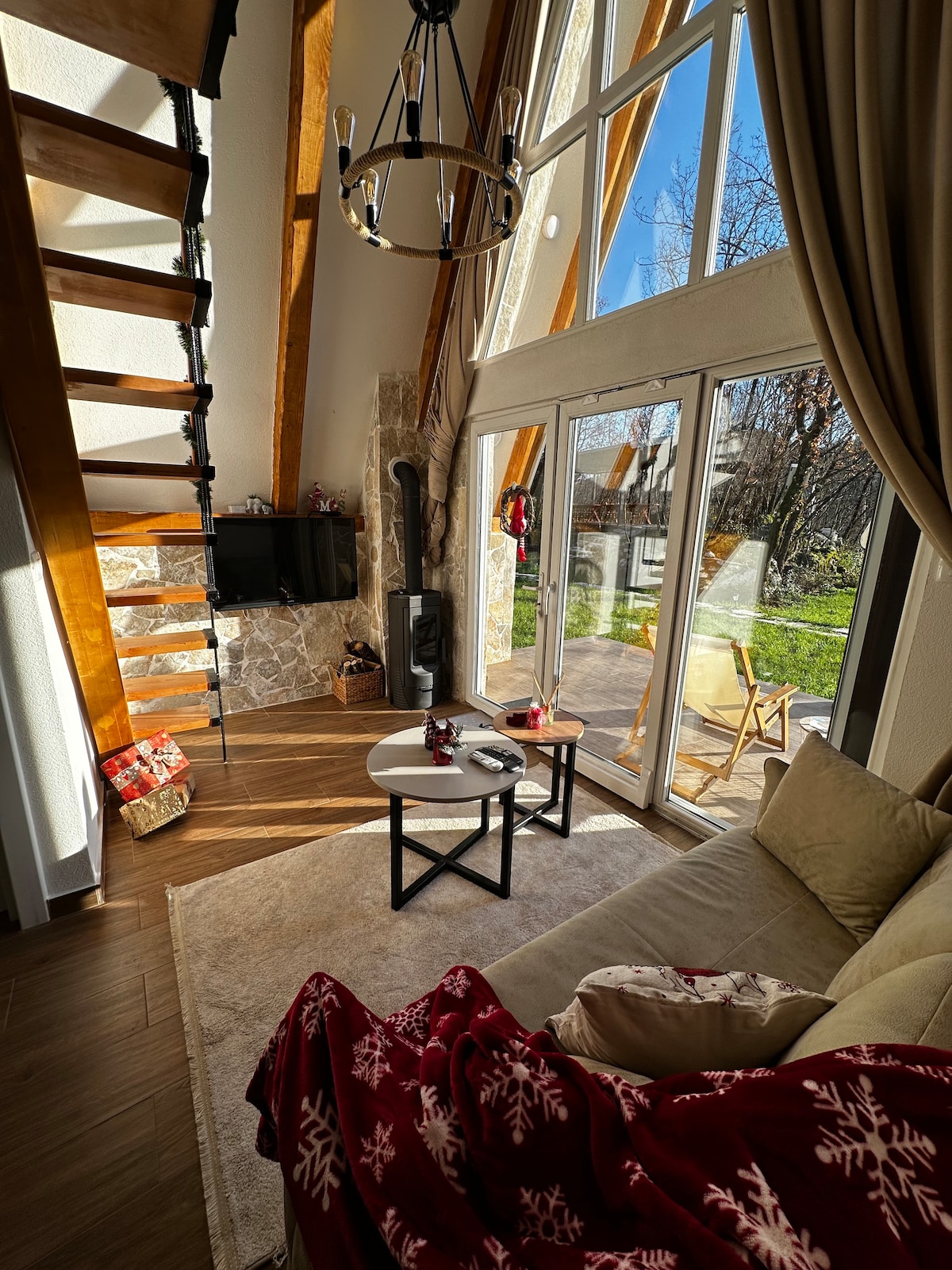Şəhərin Üstündə xoş gəlmisiniz – Podqoritsaya panoramik mənzərə açılan qonaq süitası. Mərkəzdən cəmi 3 km məsafədə yerləşən 40 m²-lik özəl terrasınızdan qızıl gün batımlarından zövq alın. Sakit səhərlər, yumşaq axşamlar və bir az fərqli bir şey axtaran səyahətçilər üçün mükəmməldir – şəhərə yaxın, lakin panoramik mənzərəli, göy ilə əhatə olunmuş.