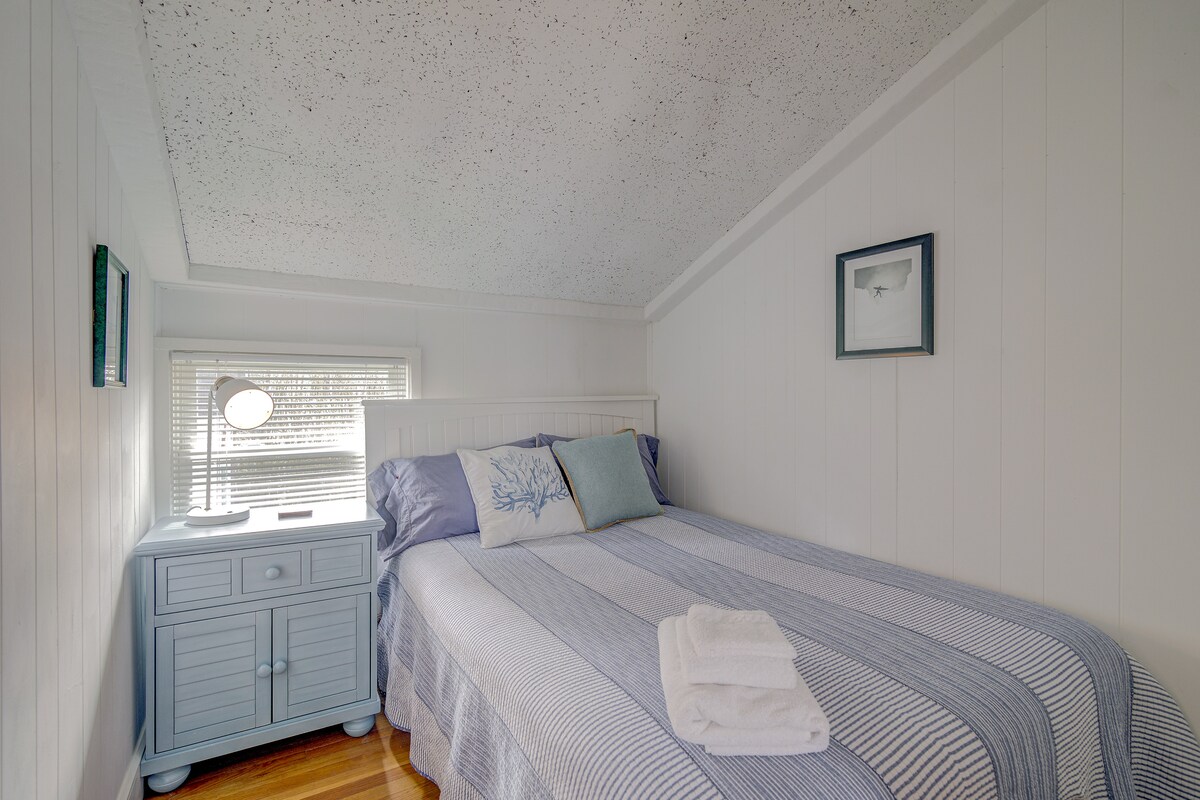 The charming waterfront home is directly across the street from a small private beach. Perfect area for families with young children. Private entrance to East Matunuck beach is just a two minute walk down the street. There is ample parking for 3-4 cars . This house has 1 queen size bedroom and one twin with trundle on the lower level (both bedrooms with TVs). The lower level also houses the living room with large screen TV, full bathroom, kitchen and laundry.