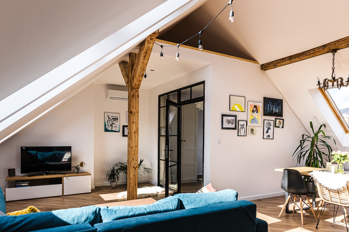 Do Państwa dyspozycji oddajemy nowoczesne i komfortowe mieszkanie położone w ścisłym centrum stolicy Bieszczad - Ustrzyk Dolnych. Apartament znajduje się na IV piętrze kamienicy. Z aż 10 okien dachowych roztacza się przepiękny widok na góry, las oraz ustrzycki rynek. W jego skład wchodzi duży salon z rozkładaną sofą, sypialnia z łóżkiem 160x200, łazienka z prysznicem, kuchnia z jadalnią otwarta na salon oraz przedpokój z pojemną szafą.