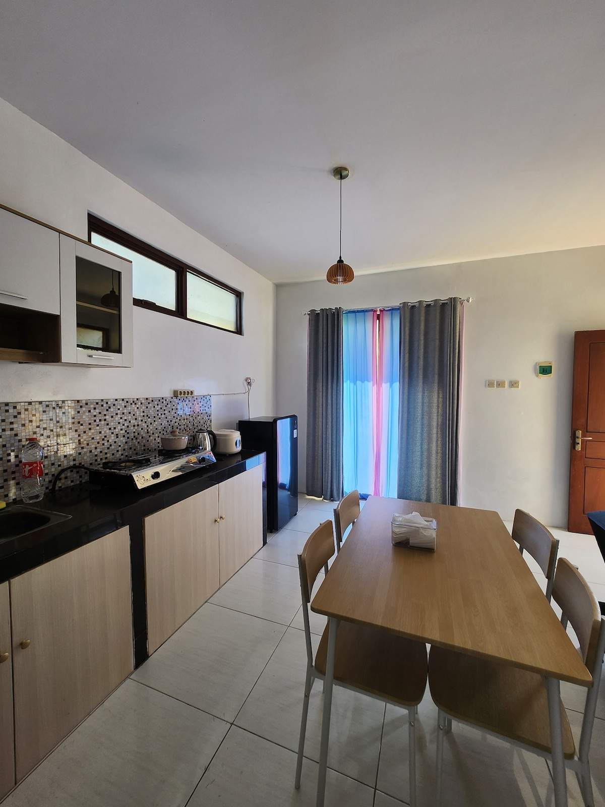 Ailələrin qalması üçün rahat olan müasir Javanese syariah villası. Qonaqlamanızı dəstəkləmək üçün geniş parkinq, vanna, anbar, 2 yataq otağı və 2 hamam otağı, yemək masası, üzgüçülük hovuzu, qaz və bir çox digər obyektlər kimi bir çox obyekt var.