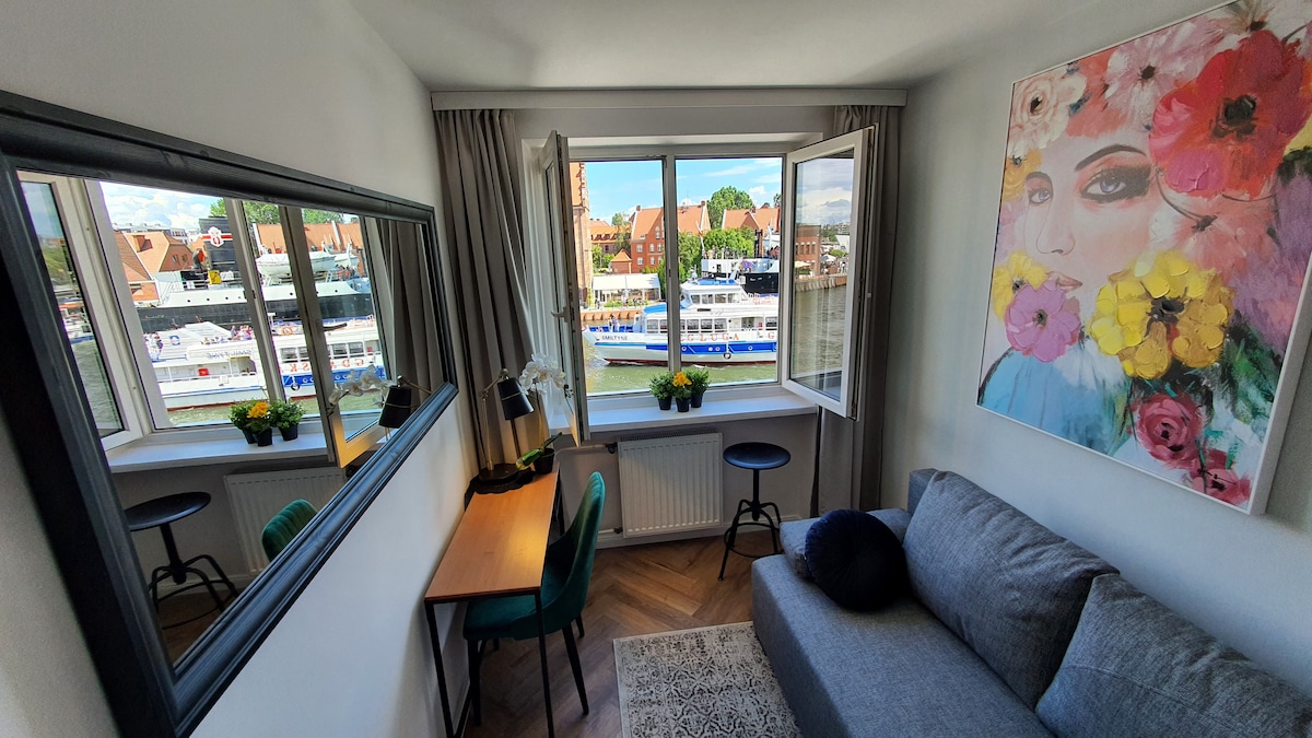 Qdanskın mərkəzində Motlava çayına baxan, mənzərəli, II Dünya Müharibəsi Muzeyinin yaxınlığında yerləşən müasir mənzil. Əsas yataq otağı ensuite tiplidir. İki kontinental tək çarpayı olan ikinci yataq otağı, birləşdirmək imkanı var. Qonaq otağında açılan divan var. Mənzilin pəncərələrindən Köhnə Şəhərə baxmaq olar. Əlavə imkanlar: qaraj, camaşırxana, terras, restoranlar. Əlavə ödənişlə parkinq yeri mövcuddur.