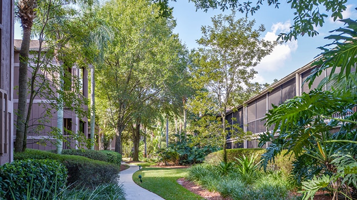 Orlando Resort Next to Disney Magic | Lazy River + Fire Pit Start your morning with coffee on your private balcony, just minutes from Walt Disney World. After a fun-filled day, float along the lazy river, soak in one of the outdoor hot tubs, or unwind by the fire pit under the stars.
