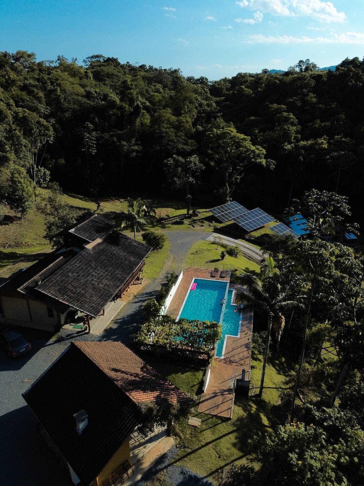 Bu unikal və sakit yerdə dincəlin. Quşların səsinə qürubdan zövq alın, inanılmaz görünüş əldə edin. Unikal füsunkarlığı, turistik və mədəni görməli yerləri olan Pomerodu ziyarət edin. Jaraguá do Sul-dan 20 dəqiqəlik məsafədə yerləşirik Pomerodun Şimalındakı Portaldan 1,5 km məsafədə Enxaimel Marşrutu girişindən 2 km məsafədə 6 km-lik Tur Nuqali şokoladları Zoopark Pomerod, Vila Enkantada, Spits Pomerdən 15 dəqiqəlik məsafədə Alles Park və Ralf Knaesel Tədbir Mərkəzindən 20 dəqiqəlik məsafədə