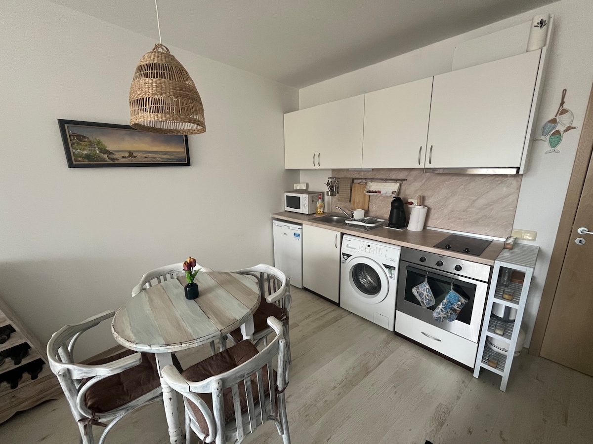 mənzil Nessebar ideal mərkəzində yerləşir. 50 metrlik ictimai nəqliyyat 50 metrlik 100 metrlik baqqal dükanı 50 metrlik baqqal dükanı 50 metrlik restoranlar çimərliyə 200 metr, köhnə Nessebardan isə bir kilometr məsafədə yerləşir. Mənzildə soba ilə təchiz olunmuş iki ayrı yataq otağı, əlavə isti su çəni və dondurucu qabları olan böyük soyuducu çəngəl-bıçaqla təchiz olunmuş iki ayrı yataq otağı var.