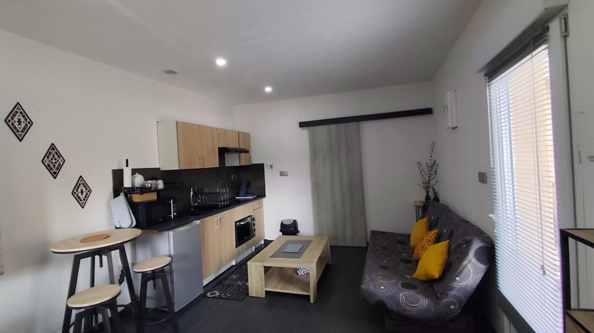 Yeraltı, vanna otağı, ikimərtəbəli vanna otağı ilə təchiz edilmiş 90 m2-lik birinci mərtəbədə yeni ev + vanna otağı olan ikimərtəbəli mətbəx Otaq geyinmə komandası 15 m2-lik bağ + terras və bağ mebeli Ayrıca parkinq 2 yer Magistral yoldan 10 dəqiqə və şəhər mərkəzindən 5 dəqiqəlik məsafədə sakit yerdə panoramik divan MacDo Intermarche çörək zavodu Ange və tütün mağazası 5 dəqiqəlik məsafədə yerləşir (500 metr) Hər qonaqdan sonra bütün evi təmizləmək/ dezinfeksiya etmək