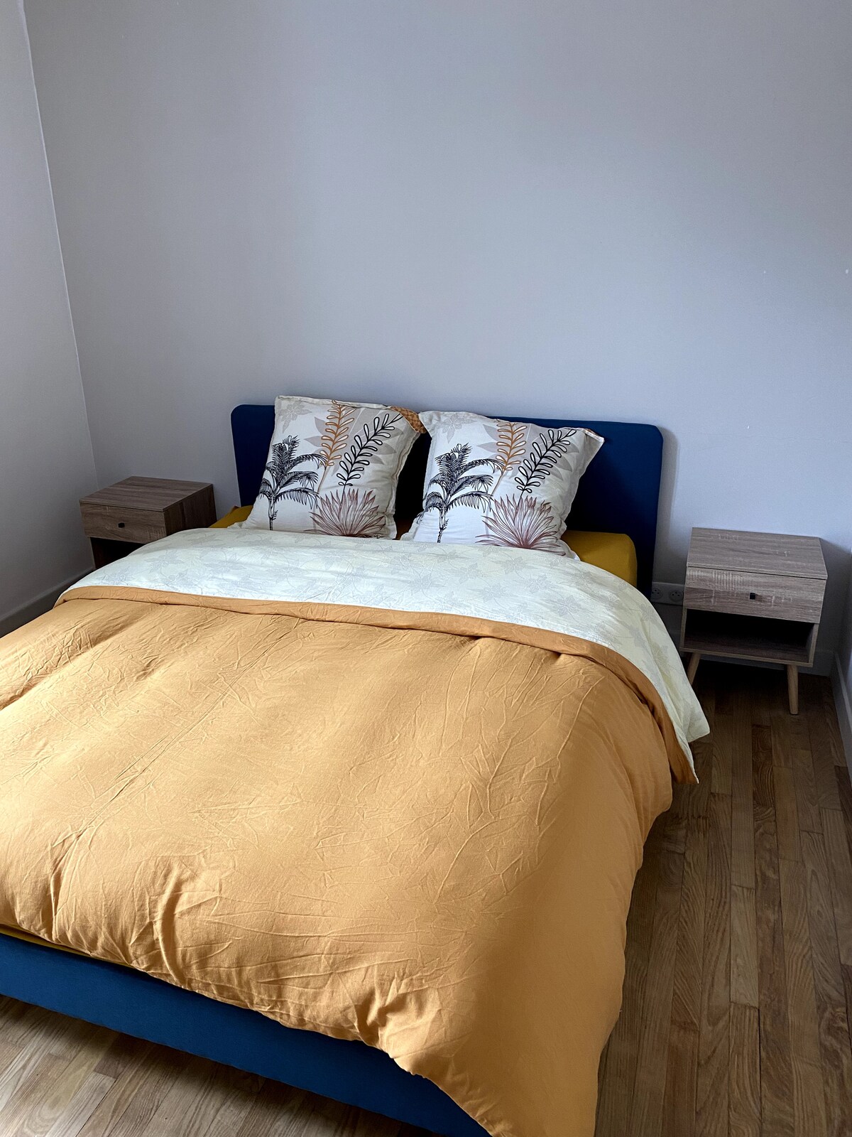 Proche du centre historique de Pont l'abbé (2 mn à pied) à l'entrée de ville et à 10 minutes des plages en voiture. Grand logement pouvant accueillir 4 personnes. En Rez de chaussé un grand salon canapé convertible de qualité, TV, bureau, wifi , wc, véranda (pour fumeur ou autre) une cuisine équipée (café, thé, sucre...), salle à manger, un grand dressing, une grande chambre lit kit size , après 2 marches une salle de bain avec Spa et hammam, petite terrasse et barbecue . Parking gratuit.