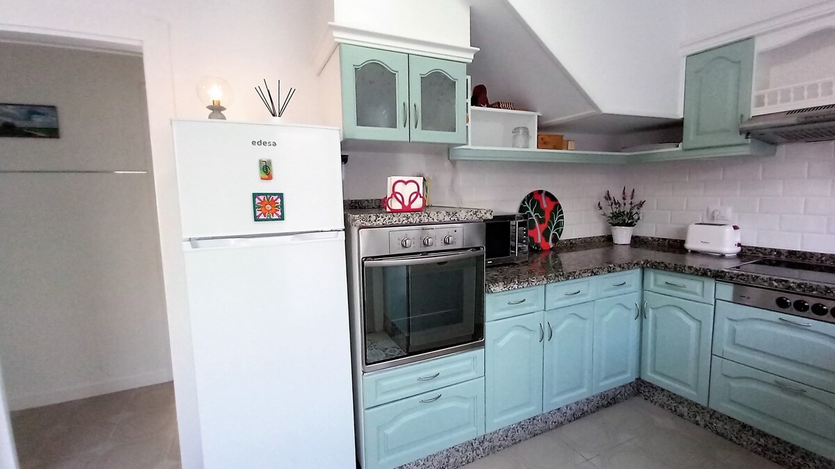 Ailə yönümlü iki yataq otaqlı apartamendo. Wi-Fi var. O, üç çimərlikdən iki dəqiqəlik məsafədə yerləşir və gün ərzində supermarket , çörək zavodu, qəssablar, barlar və s. üçün lazım olan hər şeyə çox yaxındır, lakin eyni zamanda sakit bir ərazidə və zövq almaq üçün ideal bir hovuzda yerləşir.