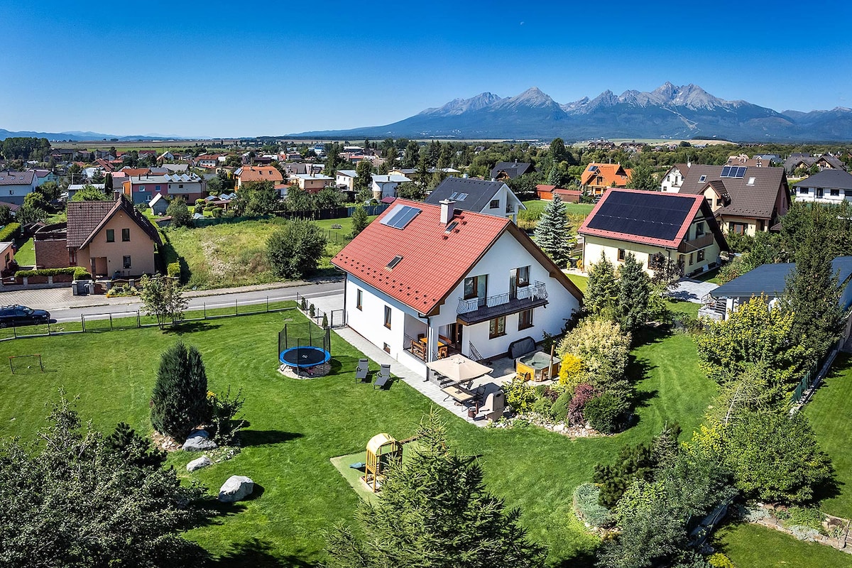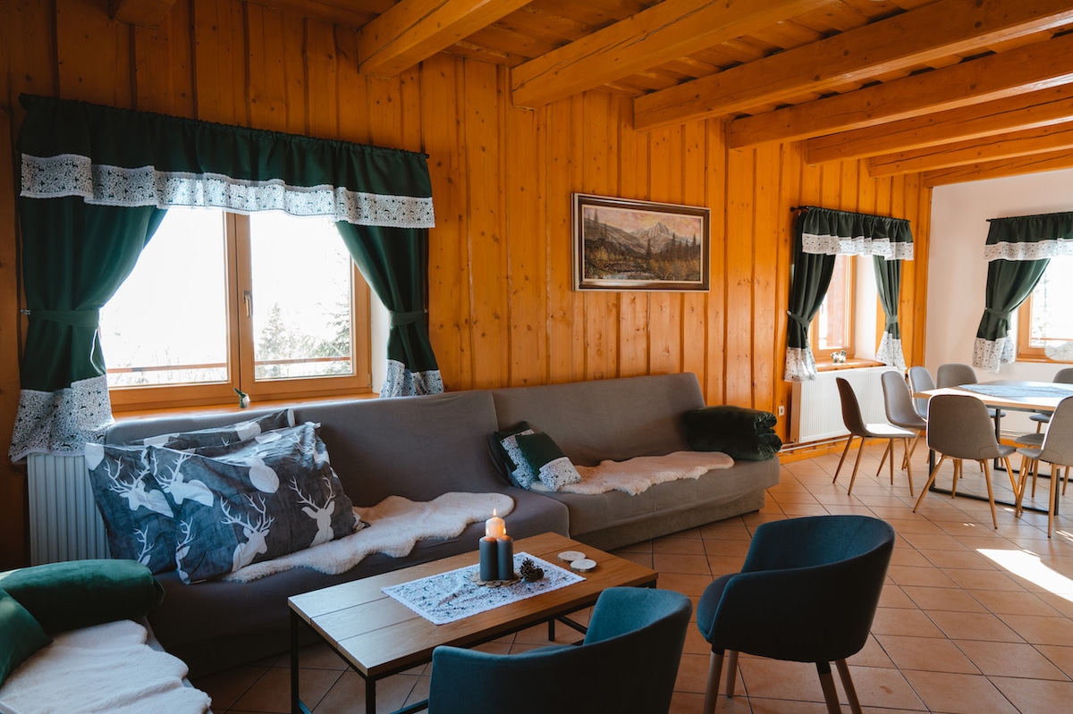 Ev əzəmətli Yüksək Tatraya açılan mənzərəsi ilə meşədə yerləşir. Evdə 3 yataq otağı, 2 vanna otağı, buxarı olan açıq mətbəx, saxlama/paltaryuyan otaq var. Qonaq otağından böyük terras, ikinci mərtəbədəki balkon.