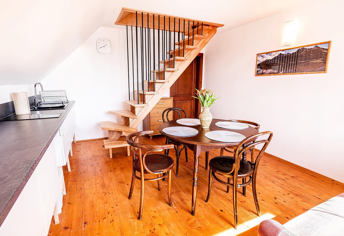 Loft mənzil Tatraview evi Velka Lomnica High Tatrasda yerləşir. Qonaqlamanın üstünlüyü mərkəzi mövqedir. Təxminən 8 km-lik məsafə High Tatras - Tatranská Lomnica, Kežmarok və Popraddır. Yüksək Tatranın panoramasının gözəl mənzərəsinin olduğu yerdən öz tam təchiz olunmuş mətbəxi və çardaqda ayrıca yataq otağı olan ayrıca mənzildə qonaqlama maksimum məxfiliyi təmin edir. Bura ayrıca hamam otağı, WIFI və televizor daxildir.