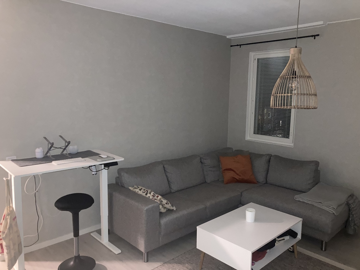 Puuvilla ticarət mərkəzinin və universitet mərkəzinin yanında əla mövqedə yerləşən işıqlı bir otaqlı mənzil. Jokiranta çimərliyinə qısa bir piyada məsafəsi və Kirjurinluoto yaxındadır. Mənzil yenidir və yaxşı təchiz olunub, mebel, qab-qacaq və əsas rahatlıqlar mövcuddur. Mənzildə bir çarpayı və iki nəfərlik divan-çarpayı var. Lazım olduqda, bir nəfər üçün əlavə çarpayı da təmin edilə bilər. Mənzildə Wi-Fi var və qonaqlar həyətində elektrik enerjisi ilə təchiz olunmuş avtomobil dayanacağından istifadə edə bilərlər. Mənzilin öz kiçik həyəti də var.