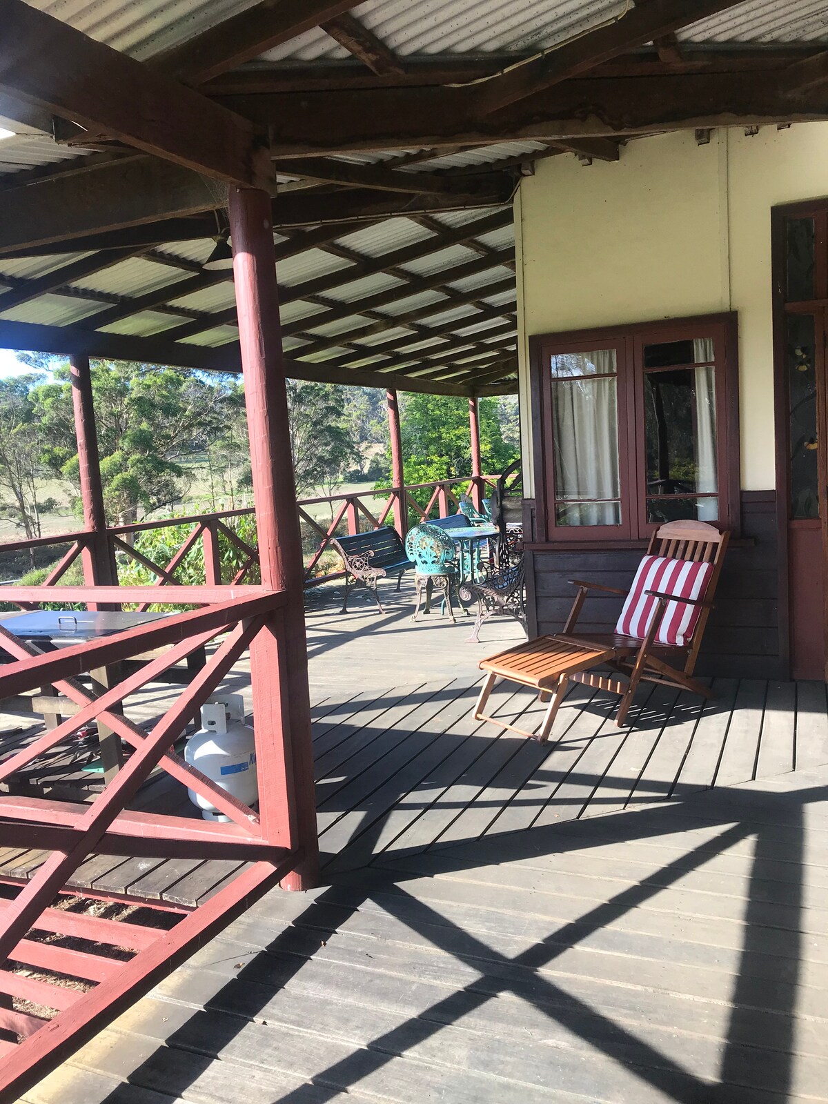 Romantik bir qaçış istəyən cütlüklər üçün. Kalqan çayına baxan bu möhtəşəm Evcikdə rahatlanın və dincəlin. 30ac-da yerləşən biz kiçik bir iş fermasındayıq. Qoyun, alpakas və atlar paddocks otlamaq və hətta bizim pet kangaroos bir səfər əldə edə bilərsiniz. Göyərtədə yanğının yanında bir qədəh yerli şərabdan zövq alaraq bol quş həyatı və çayda yüksələn balıqlara qulaq asa bilərsiniz. Gəzinti yolları, çay və çimərliklərə yaxınlaşıb bütün bu gözəl bölgənin nə təklif etdiyini araşdırın.