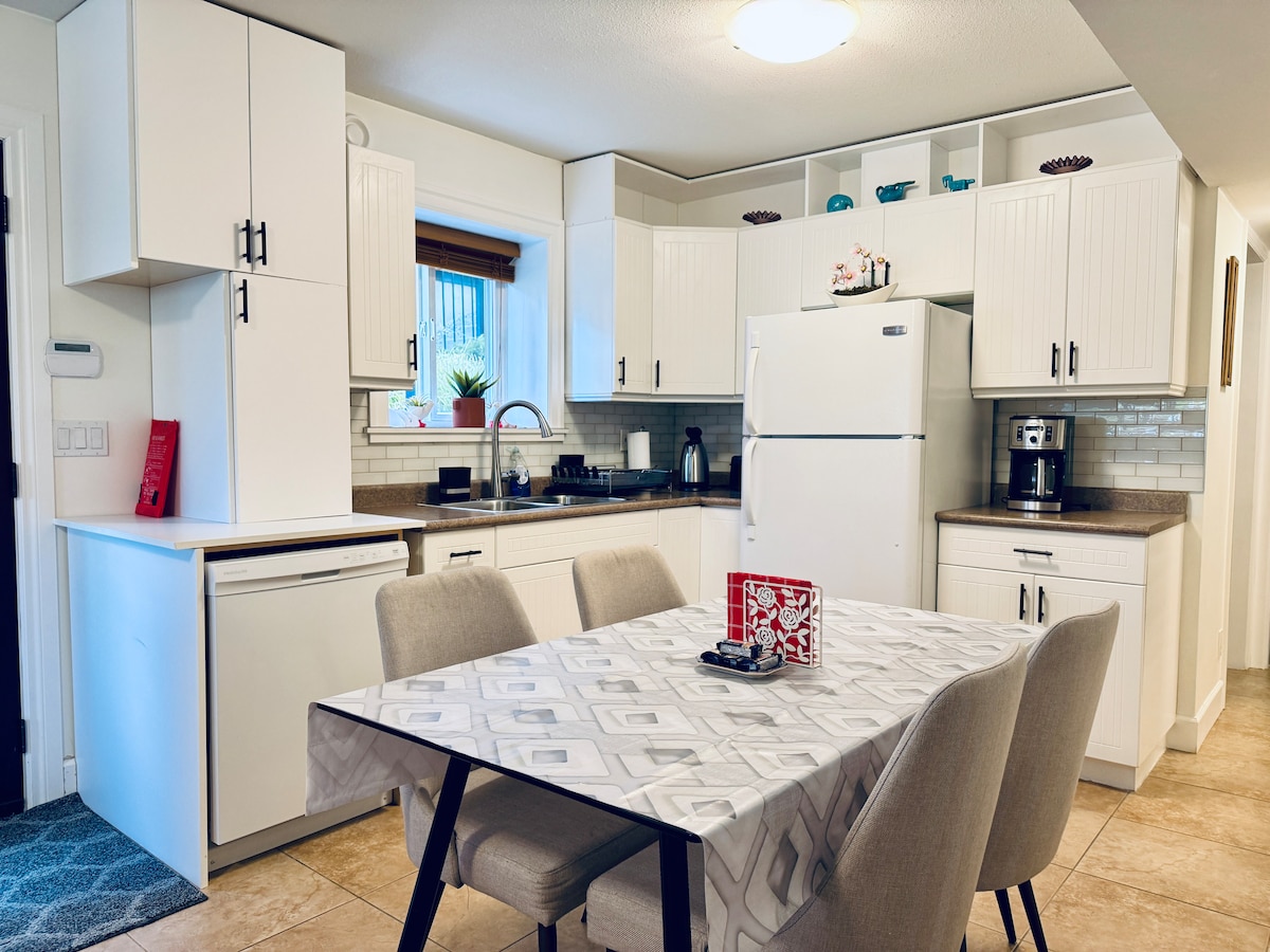 Spacious and spotless 2 bedroom accommodation with its own entrance, nestled among parks and walking trails. Conveniently located near public transit & major highway access. Kitchen is equipped with fridge/freezer, dishwasher, coffee maker and kettle—perfect for short or extended stays. The primary bedroom features a queen-size bed, while the second bedroom offers a comfortable double bed. In-unit washer and dryer included. Enjoy a smooth arrival with seamless self check-in.