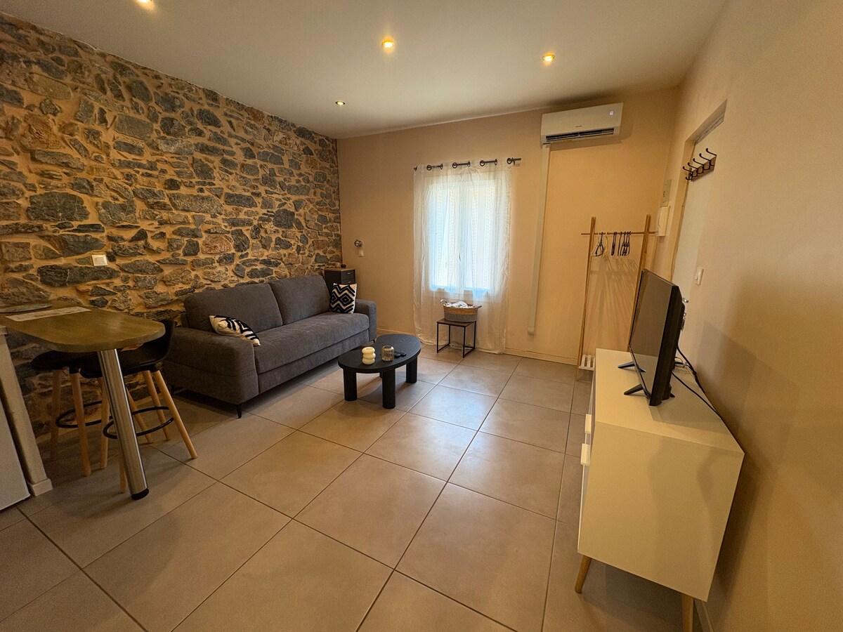 3 otaqdan ibarət, balkonlu tam təmirli, Aralıq dənizinə açılan nəfəskəsici mənzərəli, çimərliyə birbaşa çıxışı olan böyük mənzil, piyada bütün imkanlar. Avadanlıq: qabyuyan maşın, paltaryuyan maşın, pulsuz Wi-Fi, televiziya. Velosipedlər və ya dəniz materialını saxlamaq üçün 13m2-lik böyük çardaq... yaşayış yerinin ətəyində ayrıca parkinq. Ağıllı kilid və klaviatura ilə öz-özünə giriş