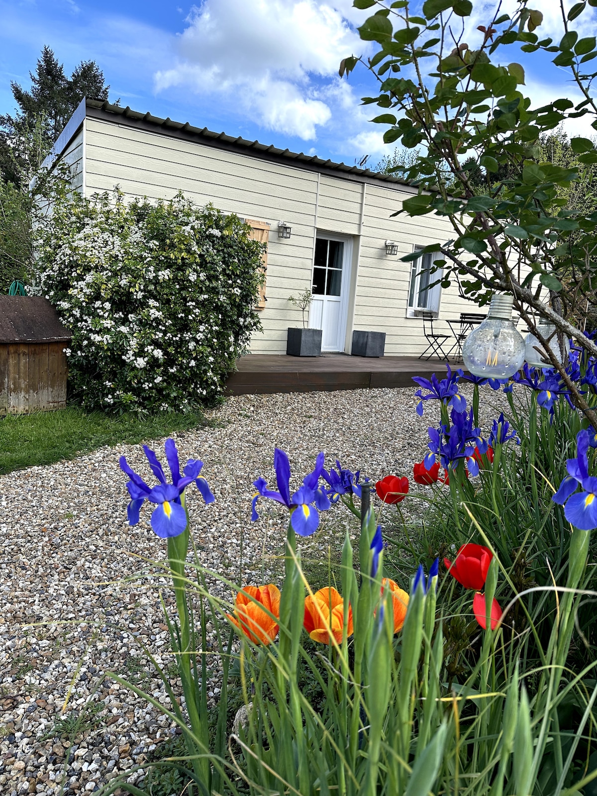 Gözəl bir kənddə, Giverniyə yaxın, bağın arxasında, blüz şitləri olan, rahat və bukolik dayanacaq üçün ideal kiçik, pilləsiz kottec tapa bilərsiniz. Normandiya qapılarında; Rouen və ya Paris istiqamətində A13-ə asan giriş. Vernonda və ya Qaillonda qatar stansiyası. Kənddə; sifariş üçün səhər çörək və kruassanların çatdırılmasını təklif edən gözəl kiçik bar. (bazar ertəsindən başqa hər gün)