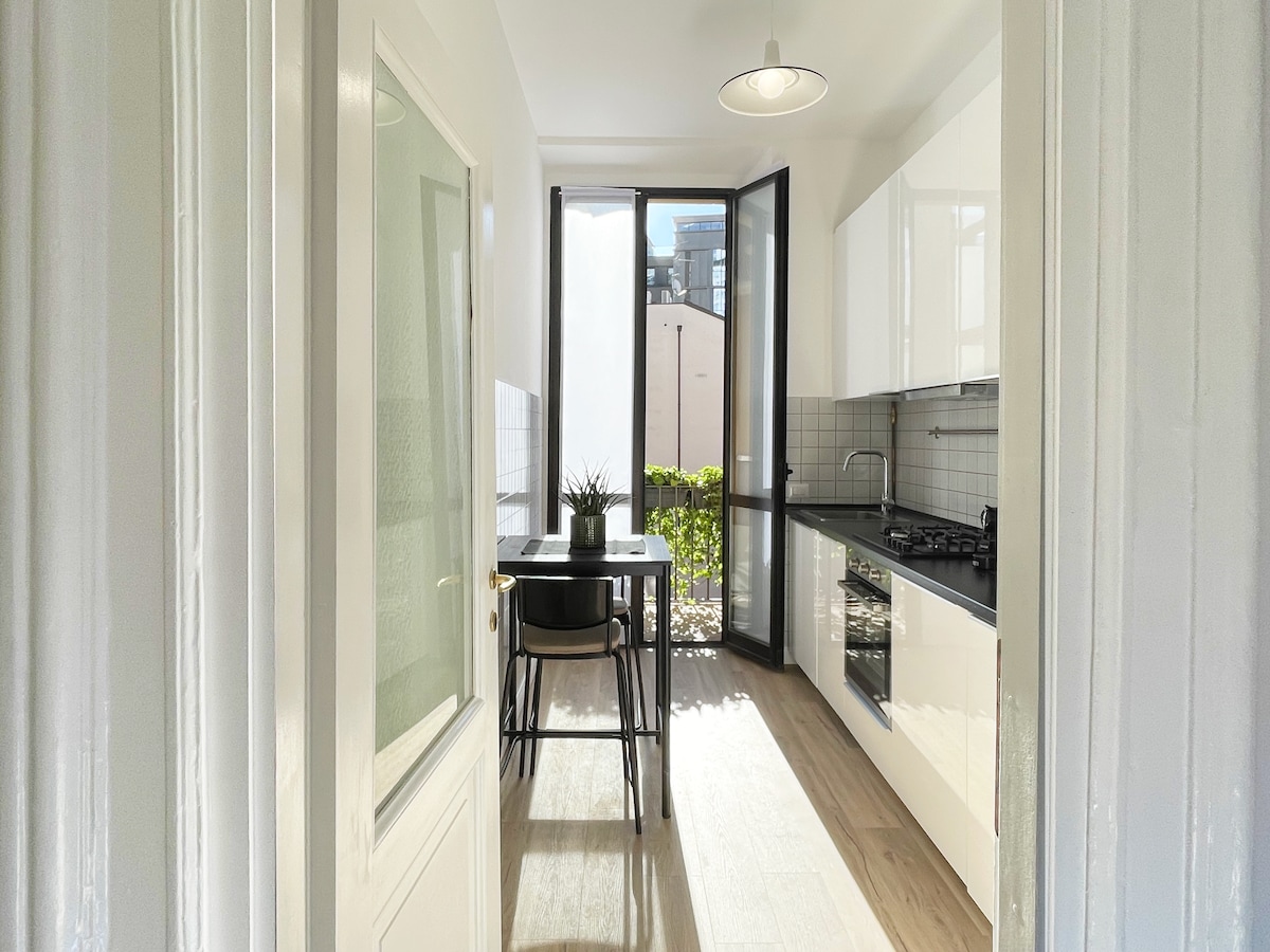 Qədim Milan həyətinin içərisində ecazkar bir mənzil tamamilə yenidən qurulub. Viale Montello 6-da, Sempione Parkından bir neçə addım məsafədə və Brera şəhərindən bir neçə dəqiqəlik məsafədə yerləşən nüfuzlu yaşayış yeri Duomoya çata bilərsiniz. Mənzil yeni, masa küncü olan yataq otağından, hamam otağından, çarpayıya və mətbəxə çevrilə bilən divanı olan qonaq otağından ibarətdir. Üçüncü mərtəbədə, Lea Garofalo bağına baxan sakit yer.