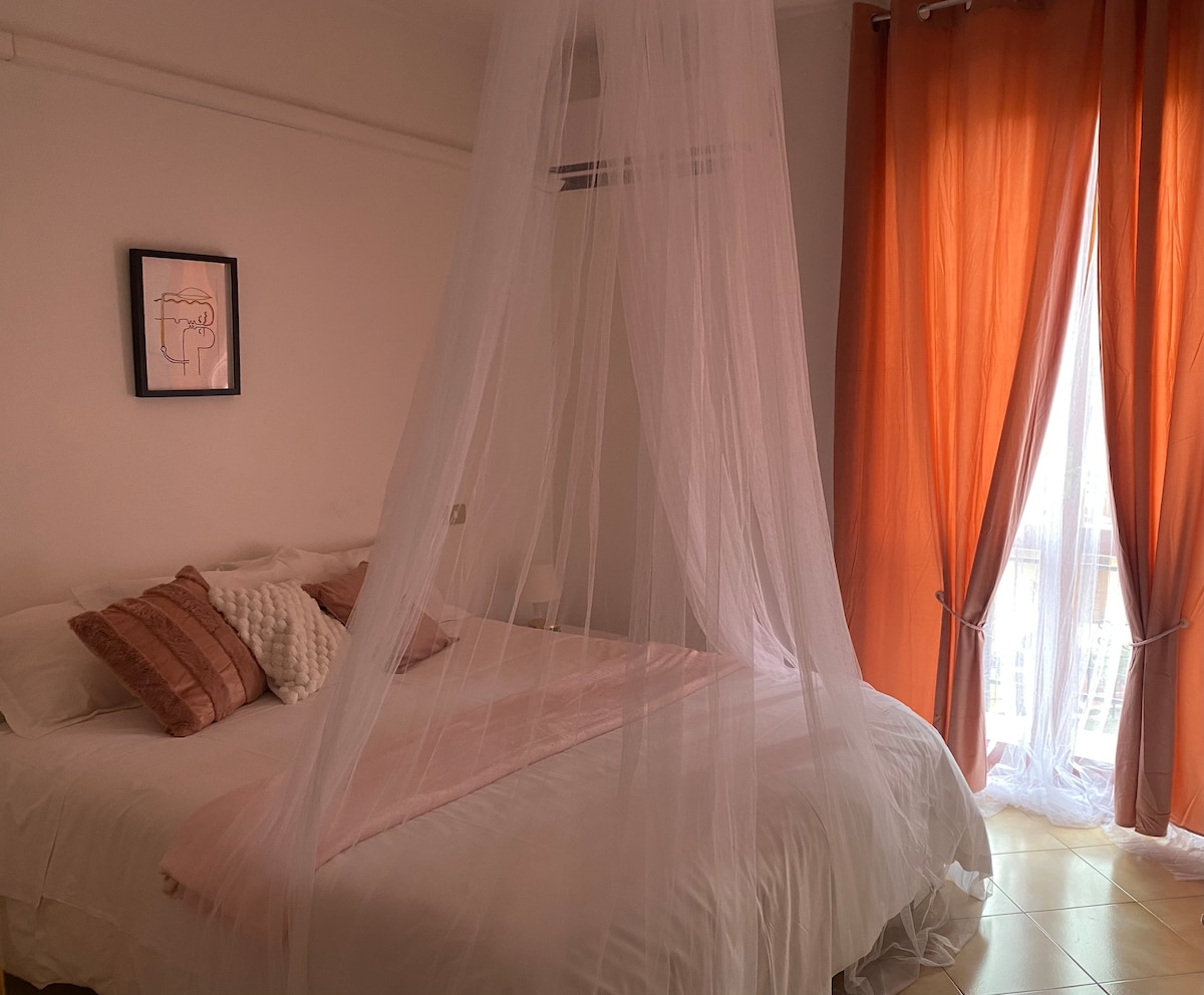 Birinci mərtəbədə 50 kvadrat metr sahəsi olan məftunedici mənzil, açıq havada təchiz olunmuş veranda və avtomatik qapısı olan şəxsi parkinqi olan ikimərtəbəli binada. Bu yaxınlarda tikilmiş və yeni mebellərlə təchiz edilmiş mənzil qonaq otağından (divan çarpayı, təchiz olunmuş mətbəx, qəhvə maşını, soba ilə təchiz olunmuş), ikinəfərlik yataq otağı, yataq otağı, duş kabinəsi olan hamam otağından ibarətdir. Kondisionerlə təchiz edilmiş kiçik səhər yeməyi təklif edirəm. Döşəkağı-dəsmal xidməti daxildir. Çox xidmət göstərən və praktik sahə.