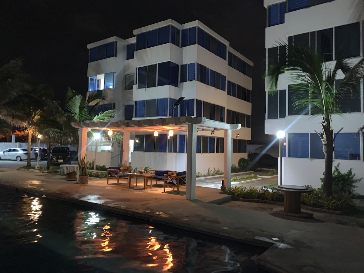 Relájate en este espacio tranquilo con todas las comodidades para disfrutar de unos días de playas. Dos habitaciones con baño, camas confortables, aire acondicionado, Cocina,Sala , comedor, Lobby Privado Internet 🛜 ,Agua caliente Área de barbacoa 🥩 Estacionamiento,Somos Pet Friendly 🐶 Ubicados en una zona más céntrica y tranquila de Crucita,cerca encontrarás todo. Urbanización Privada,ideal para familia y amigos!