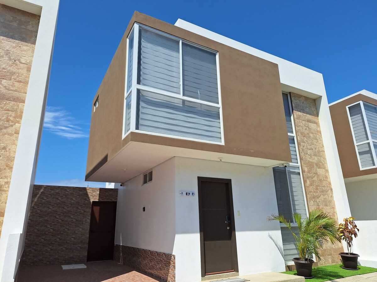 ¡Bienvenidos a nuestra casa frente al mar! Disfruta del lujo con jacuzzi, piscina, BBQ y comedor al aire libre. Lavadora y secadora incluidas. Ubicada en una urbanización segura y tranquila, estamos a 3 minutos en auto o tricimoto de la playa de Jaramijó. Relájate y disfruta de unas vacaciones inolvidables. ¡Reserva hoy y vive la experiencia perfecta!