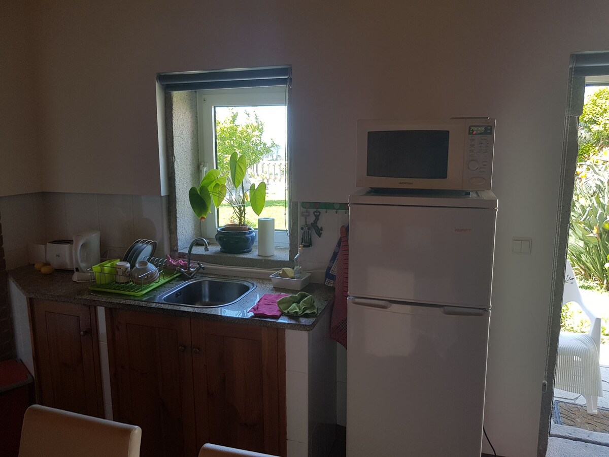 Bu bir otaqlı studiya mənzili yenicə təmir olunub və tərəvəz və meyvə ağacları yetişdirdiyimiz kiçik fermamızda yerləşir. Ev qoçlanmış torpaqdan hazırlanıb, möhtəşəm Seixe çayından cəmi bir neçə metr məsafədə, yaşıl təpələr və sahələrlə əhatə olunub. Vadi çox sakitdir və inək, at, keçi, qoyun, eşşək və donuz kimi heyvanlarla doludur. İsti günlərdə çayda soyutma dalınca gedə və ya cəmi 6 km məsafədə yerləşən möhtəşəm çimərliyə baş çəkə bilərsiniz!