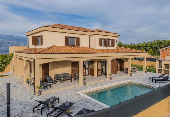 If you would like to visit the Zadar region and you want to avoid the traffic and hustle and bustle of the city, this villa in Posedarje is the right choice for you! Villa Royal Blue with Heated Pool is located on a spacious estate of 1070 m2 near the Novigrad Sea. It boasts 4 bedrooms, 5 bathrooms and can perfectly accommodate up to 10 persons. A 4-star villa of 320 m2 has all amenities you could possibly want while on holiday!