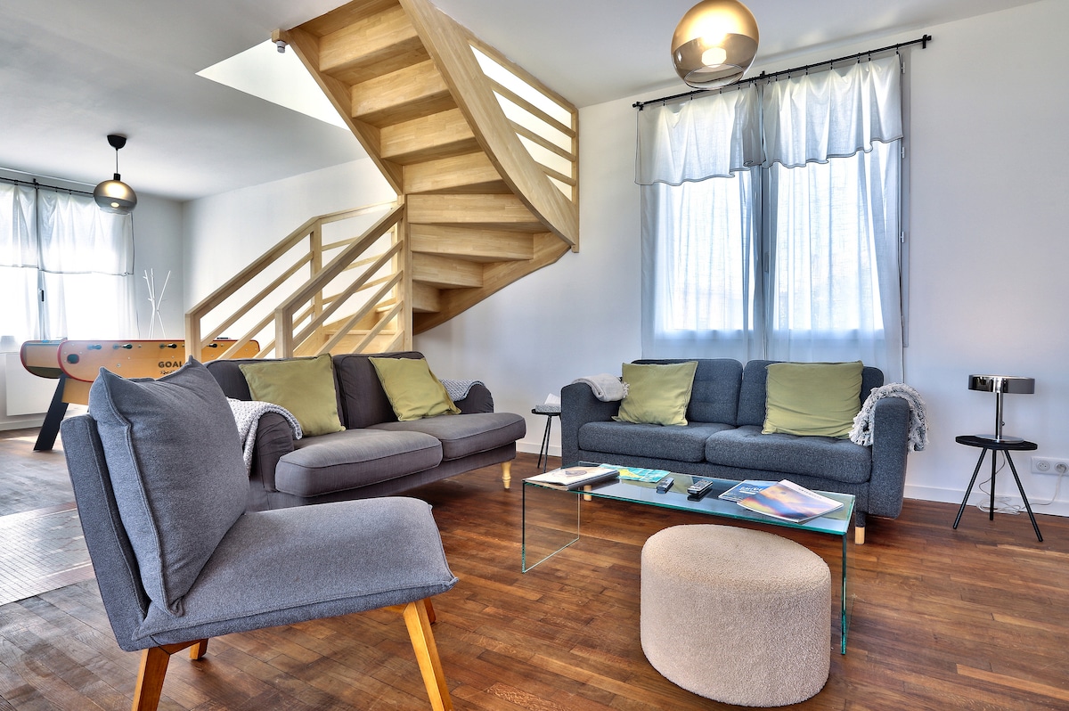 2020-ci ildə yenilənmiş 80m² -lik yaşayış yeri aşağıdakılardan ibarətdir: - 1 ədəd təchiz olunmuş və təchiz edilmiş mətbəx - 140 X 190-da divan çarpayısı ilə təchiz olunmuş 20 m² 1 qonaq otağı, televizor - 140x190 + 1 əlavə çarpayı ilə təchiz 20m² 1 yataq otağı 1 pers + 1 körpə çarpayısı - Gəzinti üçün duş/Paltaryuyan maşın/Fen ilə təchiz olunmuş 1 vanna otağı - 1 ayrı WC - 1 20m² - Bağçaya birbaşa çıxışı olan yemək sahəsi - Bağ mebeli, günəş vannası və barbekü ilə 1 xüsusi bağça və parkinq