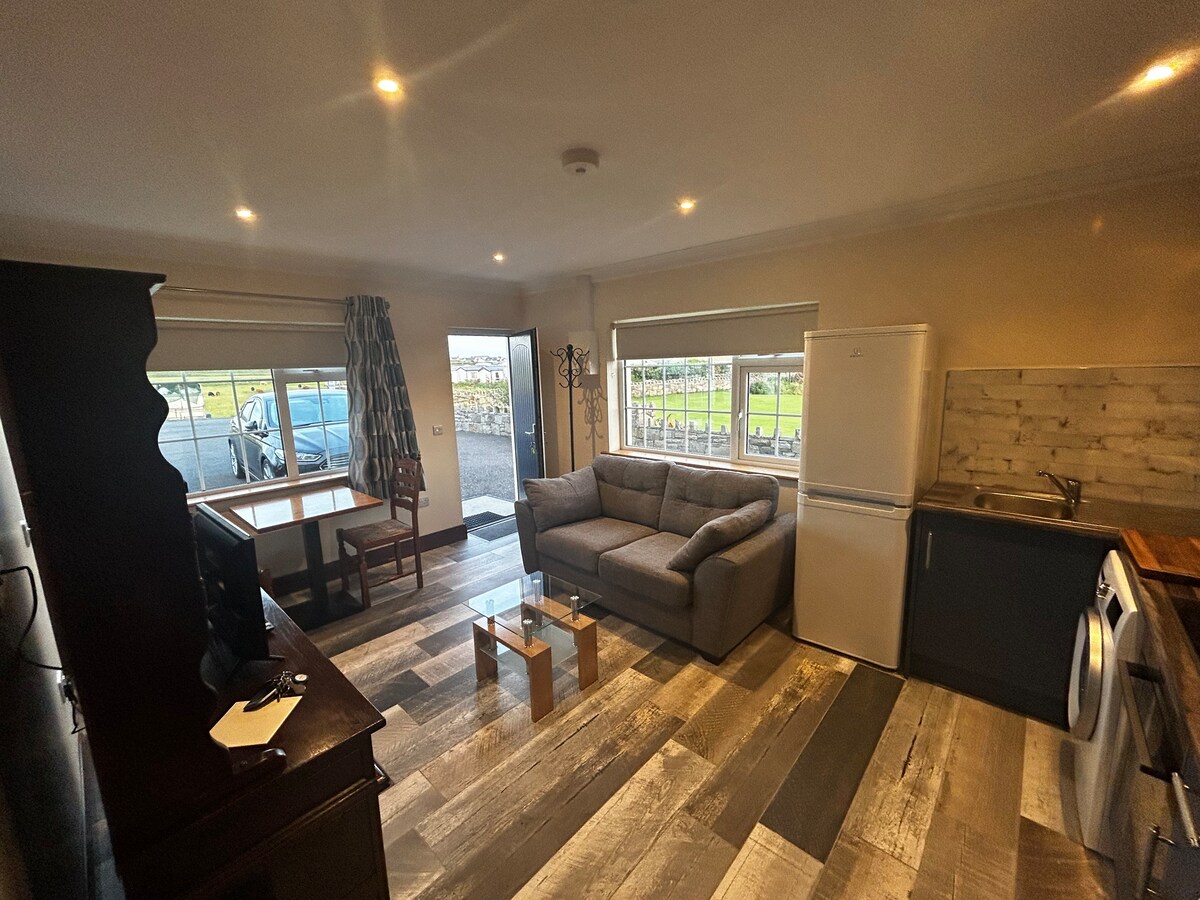 Bir yataq otağı, qonaq otağı, mətbəx və hamam otağı olan müasir yeni bəzədilmiş mənzil. Oturan otaqdan möhtəşəm dəniz mənzərələri və yataq otağından mənzərələri seyr edin. Pəncərənizin çölündəki qırılma dalğalarının səslərinə baxın. Bu dəbli mənzil "The Cliffs of Moher" və "Burren" Milli Parkını ziyarət etmək üçün mükəmməl baza olan Vəhşi Atlantik Yolu üzərində yerləşir. Atlantik okeanının fasiləsiz mənzərəsinə sahib olan bu dəniz kənarında yerləşən məkan rahat tətil üçün idealdır.Yüksək sürətli Wi-Fi!