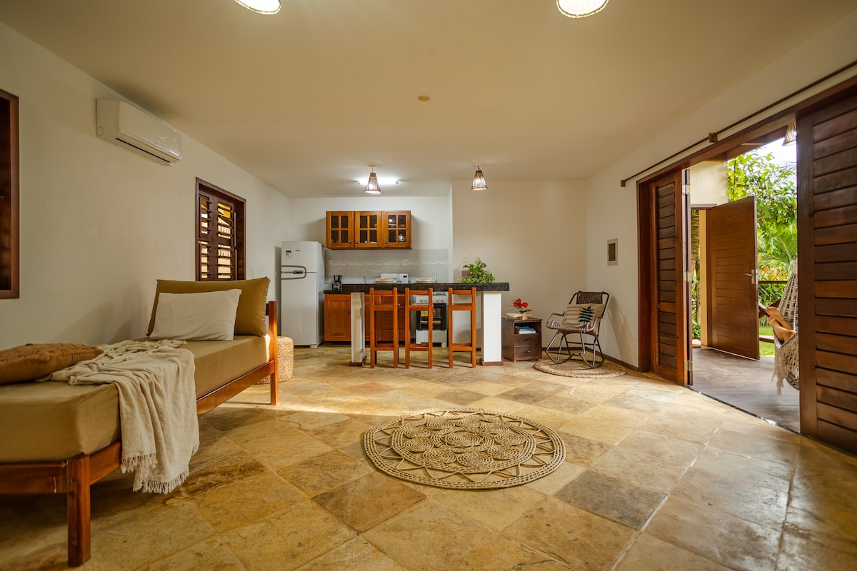 Dənizdən bir az aralıda yerləşən bu unikal mənzildə Cerinin sehrinə qərq olun! Müasir imkanlar, nəfəskəsici gün batımı axtarışı və kulinariya sərgüzəştləriniz üçün hazır mətbəx sizi gözləyir. Unikal təcrübə axtaran cütlüklər və kiçik ailələr üçün mükəmməldir. Kəndin mərkəzində yerləşən istirahət yeriniz unudulmaz olmağı vəd edir. Rezervasiyanızı təmin edin və Jericoacoaranın füsunkarlığını kəşf edin!