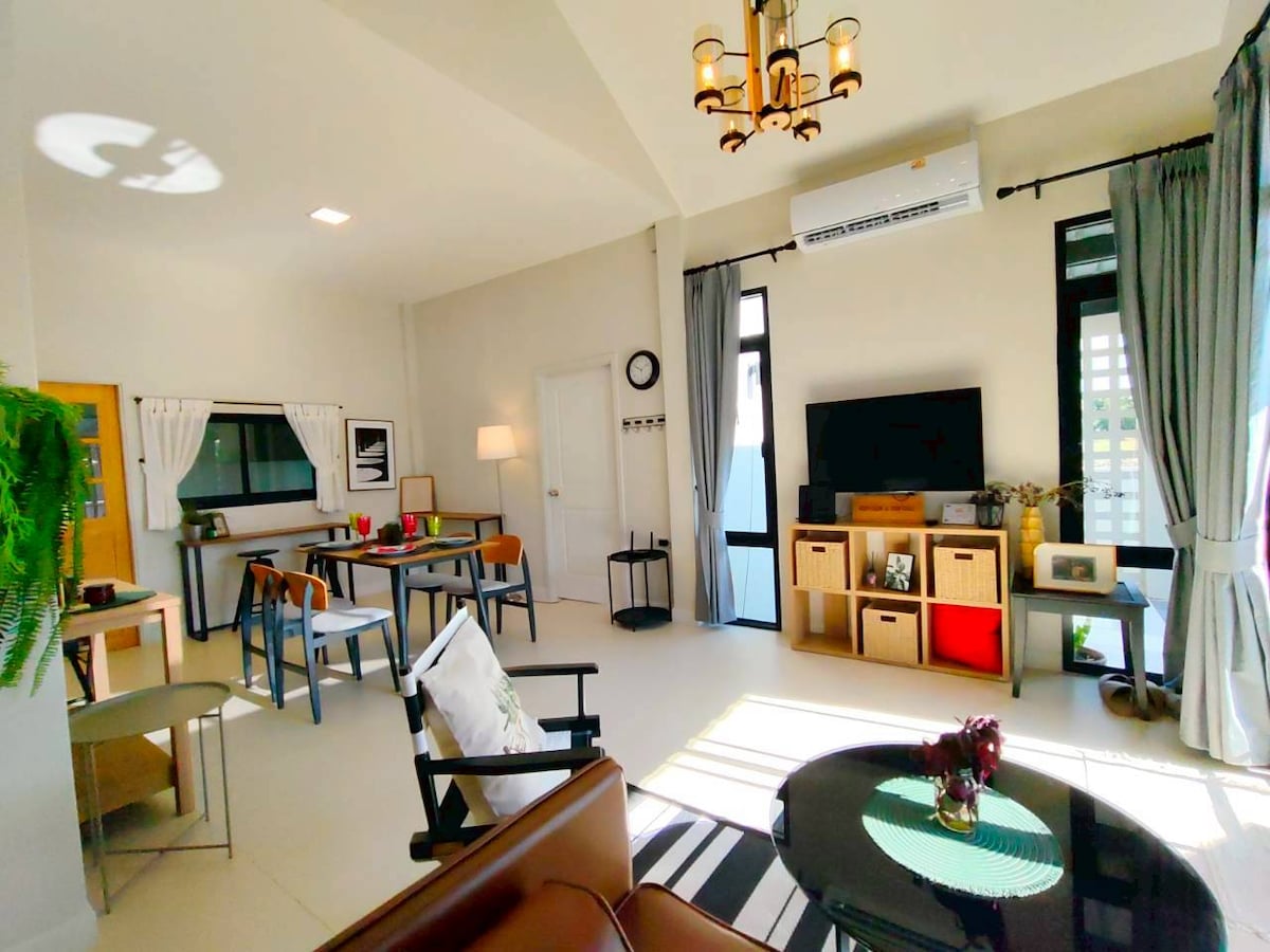 Wangnamkeaw təbiətinin ortasında mətbəxi, geniş balkonu, uşaq meydançası olan sadə, rahat ev. Bura 6-9 nəfərə qədər qonaq qəbul edə bilər və ya qrup şəklində gəlsəniz, rəqs edə və ya fəaliyyətləri təmin edə biləcək geniş qazonumuz var.