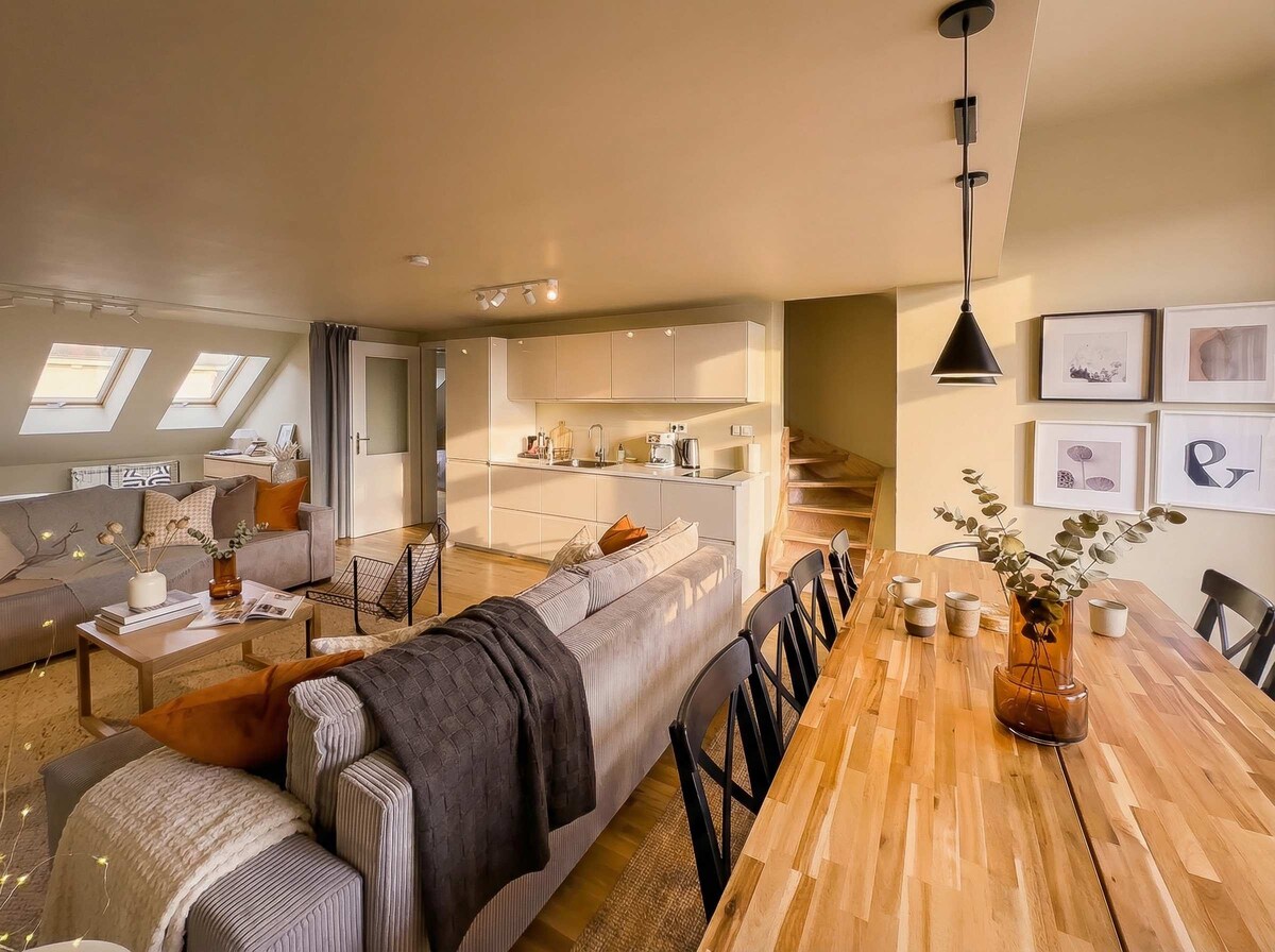 Rahat çarpayılardan tutmuş dəsmallara və qəhvə fincanlarına qədər hər şeyi tapa biləcəyiniz məşhur memarlıq studiyası Nedvěd Architekti tərəfindən dizayn edilmiş yeni dəbli tam təchiz edilmiş mənzilləri təcrübədən keçirin. Diqqətlə təmir edilmiş bina tarixin ən yaxşı cəhətlərini qoruyub saxlayıb və müasir mənzilin tələb etdiyi hər şeyi əlavə edib. Özünüzü rahat hiss edin! • Praqanın mərkəzinə 5 dəqiqə • Ən yaxın kafeyə 80 metr • Əsas dəmir yolu stansiyasından 1 dayanacaq • Metro və tramvaydan uzaq addımlar