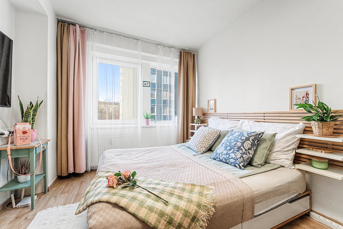 Müasir, rahat və super təmiz studiya mənzili Praqanın Köhnə Mərkəzinə asanlıqla daxil ola bilər (15 dəqiqə). Öz-özünə yoxlayın (sorğuya əsasən saat 17:00 -dan və ya daha əvvəl). Wİ-Fİ (50 Mb/s), NETFLIX, qəhvə və çay pulsuz. Tramvay stansiyasına piyada 5 dəqiqə (sonra Köhnə Mərkəzə 15 dəqiqə). Metro stansiyasına piyada 10 dəqiqə (sonra Köhnə Mərkəzə 4 dəqiqə). 1 cüt pis (200 sm x 160 sm), təchiz olunmuş balaca mətbəx. Duş küncü, tualet,paltaryuyan maşını (saç feni) olan 1 hamam otağı.