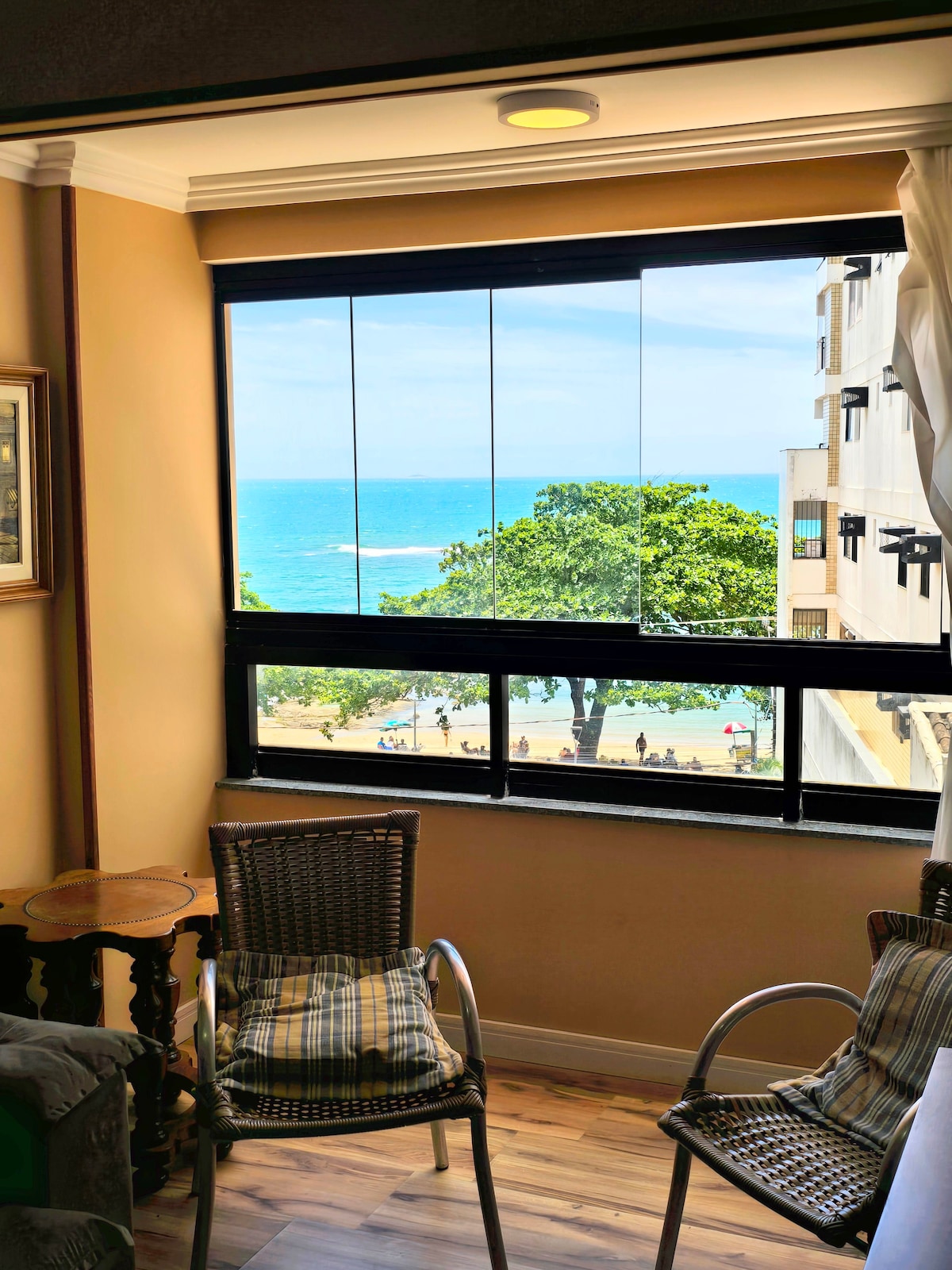 Quarapari şəhərinin mərkəzində qonaqlayın! Müasir və tam kondisionerli studiyamız iki lift və 24 saatlıq konsyerj xidməti olan binanın 5-ci mərtəbəsində yerləşir, bu da rahatlıq və təhlükəsizlik təmin edir. Praia das Castanheiras çimərliyindən cəmi 200 metr məsafədə şəhərin ən yaxşı yerlərini praktik olaraq təcrübədən keçirə bilərsiniz. Məkanda çimərlikdə keçirilən gündən sonra dincəlmək üçün ideal olan xarici balkon var. Parklanma yeri yoxdur, lakin yaxınlıqda seçimlər var.