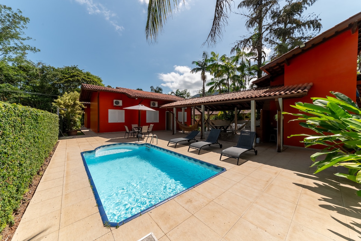 ** Biz ev heyvanı dostuyuq. 3 yataq otağı (1 süita), kondisioneri, 3 vanna otağı, böyük və gözəl bağı, tam mətbəxi, üzgüçülük hovuzu, 300MB lifli Wi-Fi-ı, barbekü və TAXTA SOBASI olan ev! 10 nəfər saxlayır. 03 avtomobil üçün qaraj. Ev şən, müasir və zövqlüdür. O, Samola kondominiumunun girişindən daxil olmaq seçimi olan, gözətçi evi olan yaşayış yerində sakit bir küçədə yerləşir. Ev Ubatubadakı gözəl Laqoinha çimərliyində çimərliyə cəmi 8 dəqiqəlik məsafədə yerləşir (500 m).