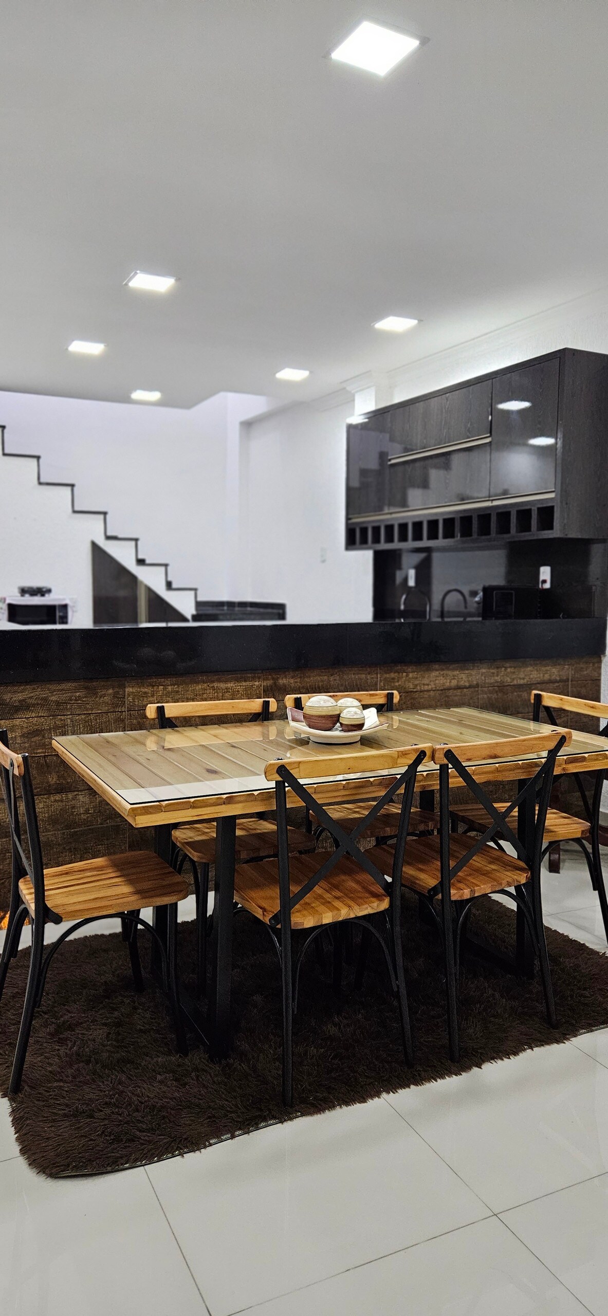 10 nəfərə qədər insanın rahat səfərləri üçün bu zərif və mükəmməl qonaqlama yeri. Şkaf və vannası olan 2 süita, kondisioner, qonaq otağı, 1 yataq otağı (süita deyil), 8 nəfərlik yemək otağı, mətbəx, sosial vanna otağı, paltaryuyan maşını olan xidmət sahəsi, barbekü sahəsi və taxta sobası olan qurman sahəsi, açıq havada duş, 4 vanna otağı, 4 avtomobil üçün qaraj var. Çimərlikdən bir neçə metr məsafədə, bir neçə turistik yerə yaxındır.Emissário, Praça da Baleia və digərləri.