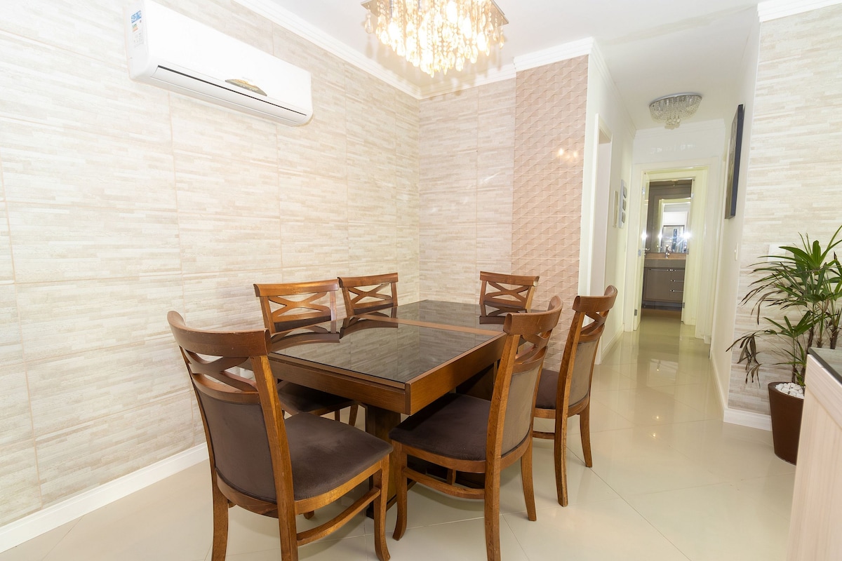 Vieques 201 | Ubicado a solo 150m de la Playa de Bombinhas, en el corazón de la ciudad. Departamento moderno y sofisticado, con excelente nivel de terminaciones, ambientes bien distribuidos y decoración contemporánea. Ideal para quienes buscan confort, ubicación privilegiada y una experiencia diferenciada cerca del mar.