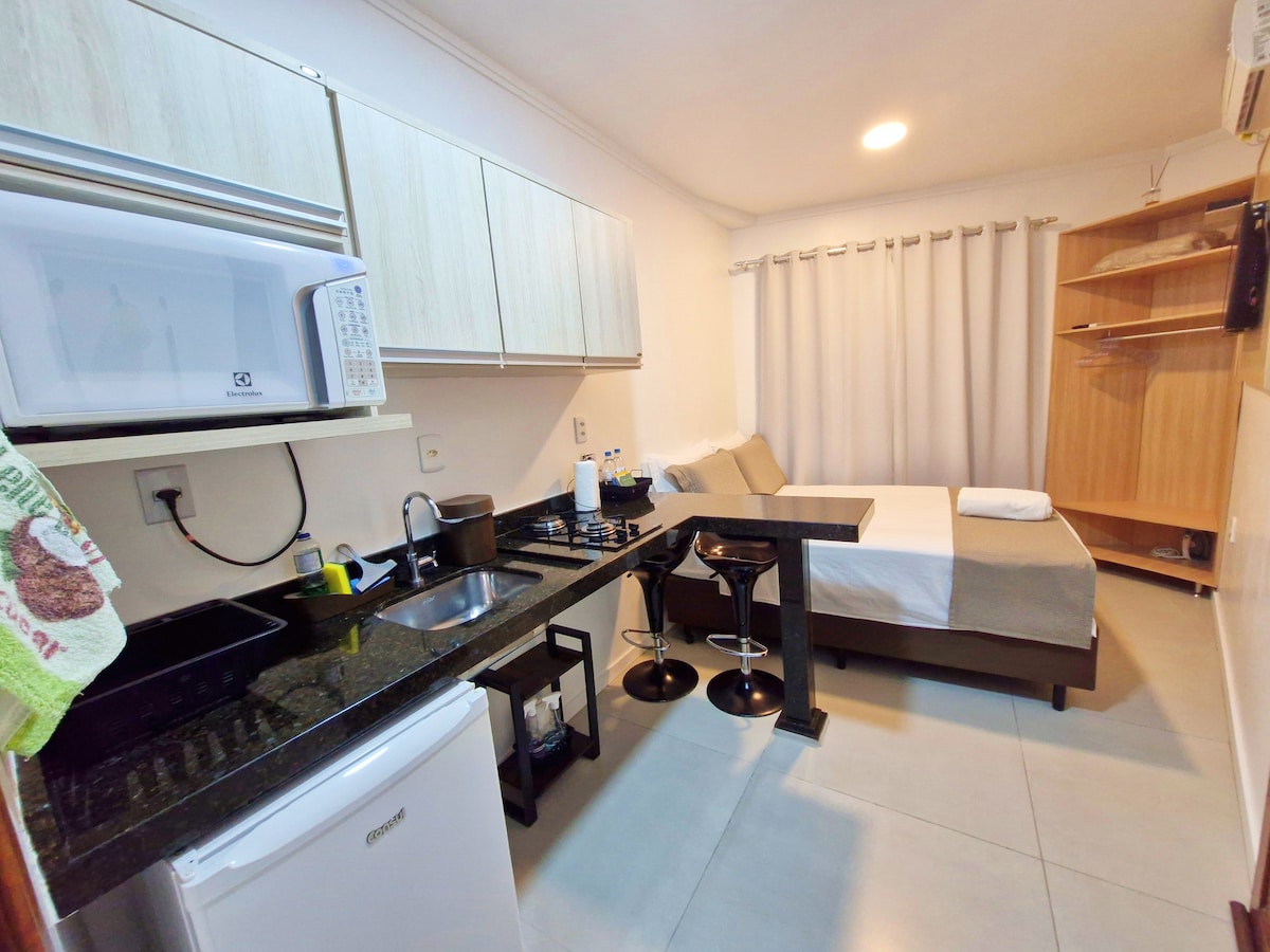 Tam Kitnet. BR-101 yaxınlığında. Wi-Fi, Kondisioner və Mətbəx.