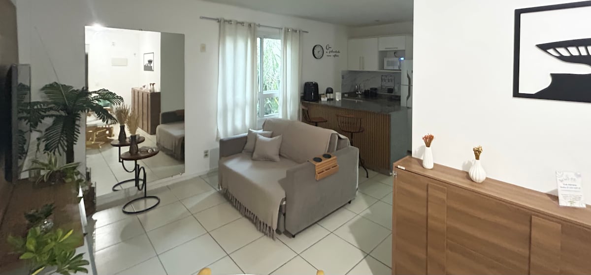 Próximo à Praia! 🌊🏖️ Apenas 8 minutos de caminhada (450m) até a praia. Apartamento aconchegante em condomínio fechado com: - Piscina, Sauna, Churrasqueira e academia para momentos de lazer e diversão. Desfrute do melhor de dois mundos: o aconchego e a tranquilidade do condomínio e seus arredores, mais a beleza natural da praia.