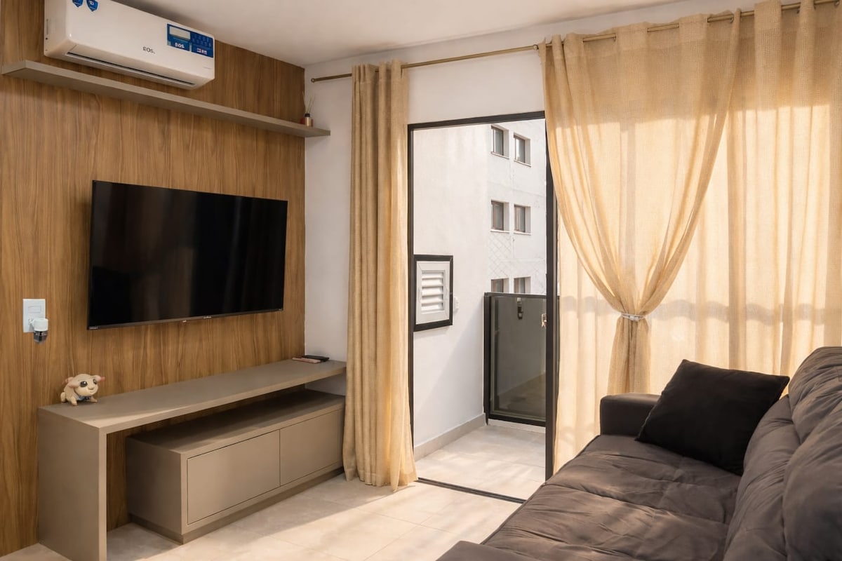 Lounge Apartment, located in Brava Beach and 10 minutes from Balneário Camboriú. The location is perfect. Only 5 blocks from Beach. Close all parties and restaurants. Condo with complete infra, Pool, Gym, Steam and 4 Barbecues. The apartment has Mountain-facing Jacuzzi with hydro and chromotherapy. Ideal for relaxing or take a romantic time. It has 58 'smart TV in the living room and 40' in the bedroom. Full kitchen. Machine washes and dries. You will love this place.