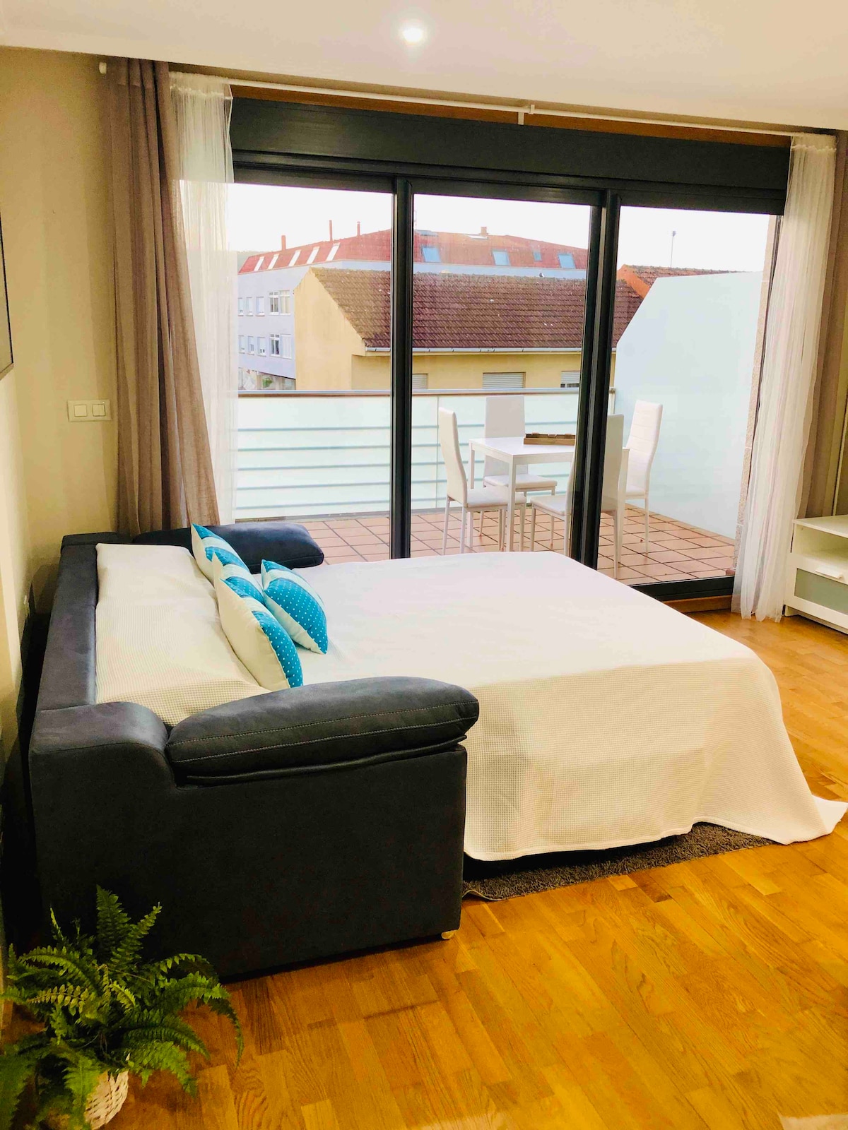 Sanxenxoda terraslı rahat studiya.