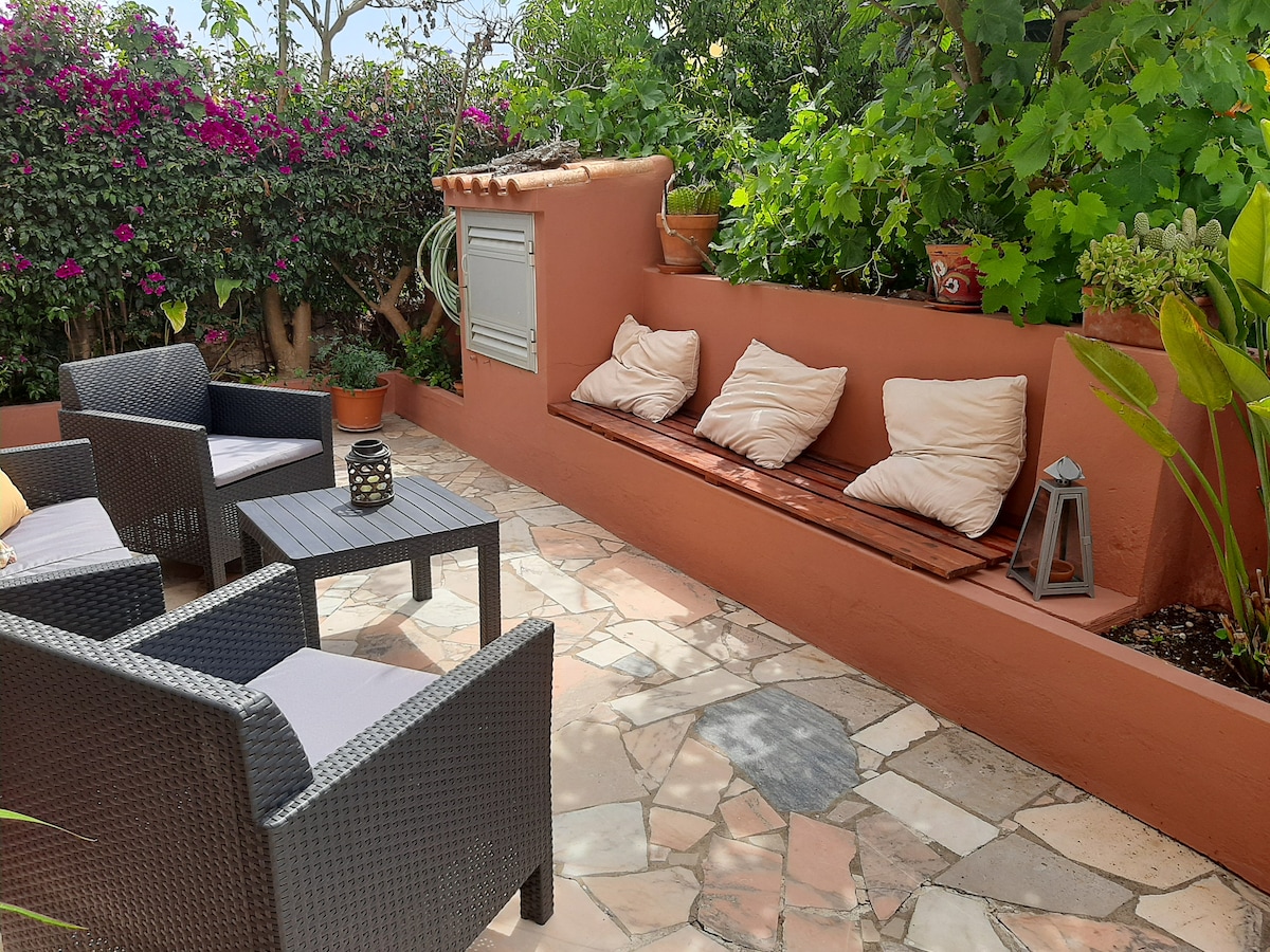 Ev 4 böyük və çox sərin ikimərtəbəli yataq otağı olan kiçik bir mənzildir. İkiqat divan çarpayısı və yemək otağı olan qonaq otağı. Küçəyə, çimərliyə və həyata birbaşa giriş imkanı. Sadə mətbəxi var, lakin bir neçə günlük tətil üçün zəruri əşyalarla təchiz olunub. Hamam otağı eksteryerdir, çünki ev ilkin olaraq belə idi və biz tikilini dəyişmək istəmirdik. Lakin o, mənzilə bitişikdir, tamamilə məxfidir və giriş yoxlanılır.