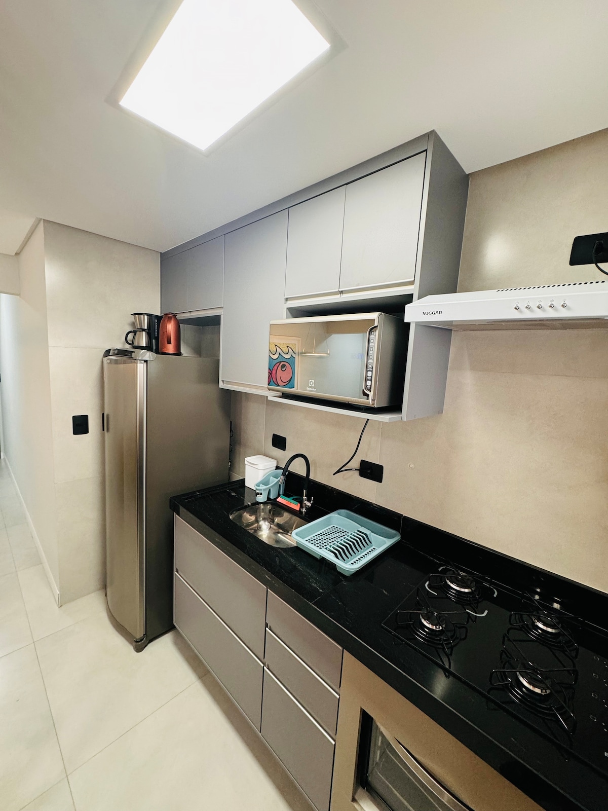 Santosda Limitsiz Okean Cəbhəsində hovuz mənzərəli Apartamento Studiyası. Qonaqların giriş və çıxışını asanlaşdırmaq üçün kart açma sistemi olan qapımız var ki, qonaq mənzilə giriş üçün heç kimdən asılı olmasın. Mənzildə queen ölçülü çarpayı, qarderob, qaranlıq pərdələr, 2-oturacaqlı divan (çarpayı ilə), 49 düymlük smart televizor, Wi-Fi (500mb), hamısı LED olan müasir işıqlandırma, split kondisioner, balkon qoruyucu tor var. 1 Qaraj yeri
