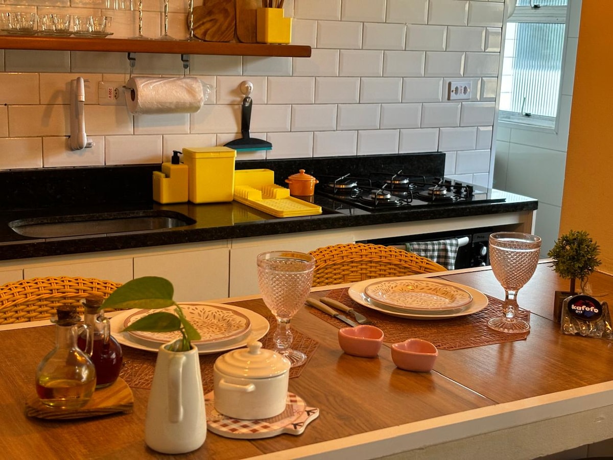 Nosso espaço foi pensado para quem busca conforto, praticidade e uma estadia tranquila no litoral. É um ambiente acolhedor, limpo e funcional, ideal para descansar e aproveitar a região com leveza. • Apartamento com vista para o mar. • Portaria 24 horas. Chek-in a partir das 14:00 horas Chekout até às 12:00 horas Próximo a mercados, padarias, farmácias, vaga de estacionamento, espaço planejado para que tenha o máximo conforto e sintam-se acolhidos como se fosse seu