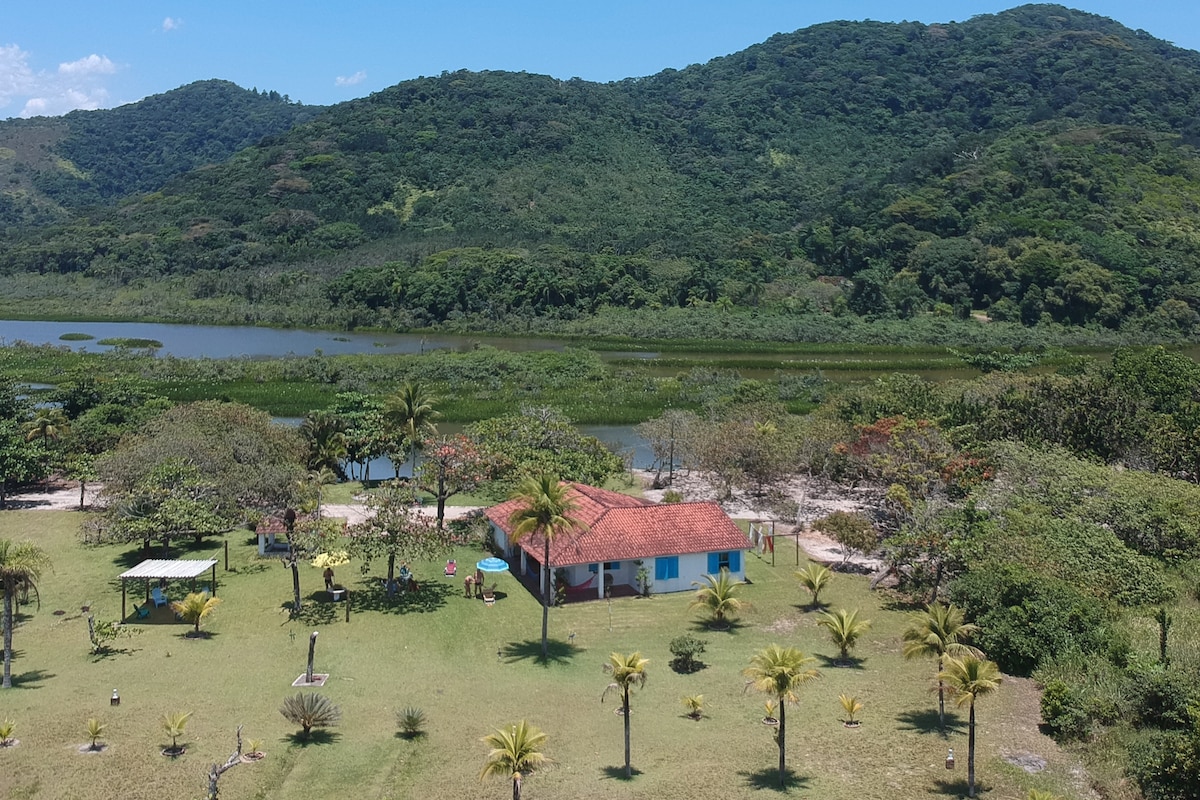 Entre o mar e a Lagoa Azul, o sítio pé na areia ocupa um território raro, amplo e preservado. De um lado o mar, do outro a lagoa — o sítio vive exatamente entre os dois. Inteiramente dedicado a quem se hospeda, é um espaço generoso para descanso, convivência e celebração no ritmo de cada grupo. Aqui, o dia pode ser vivido do seu jeito: caminhadas, mergulhos, refeições compartilhadas, pesca ou descanso à sombra dos cajueiros. Um lugar raro para quem busca espaço, silêncio e dias bem vividos.