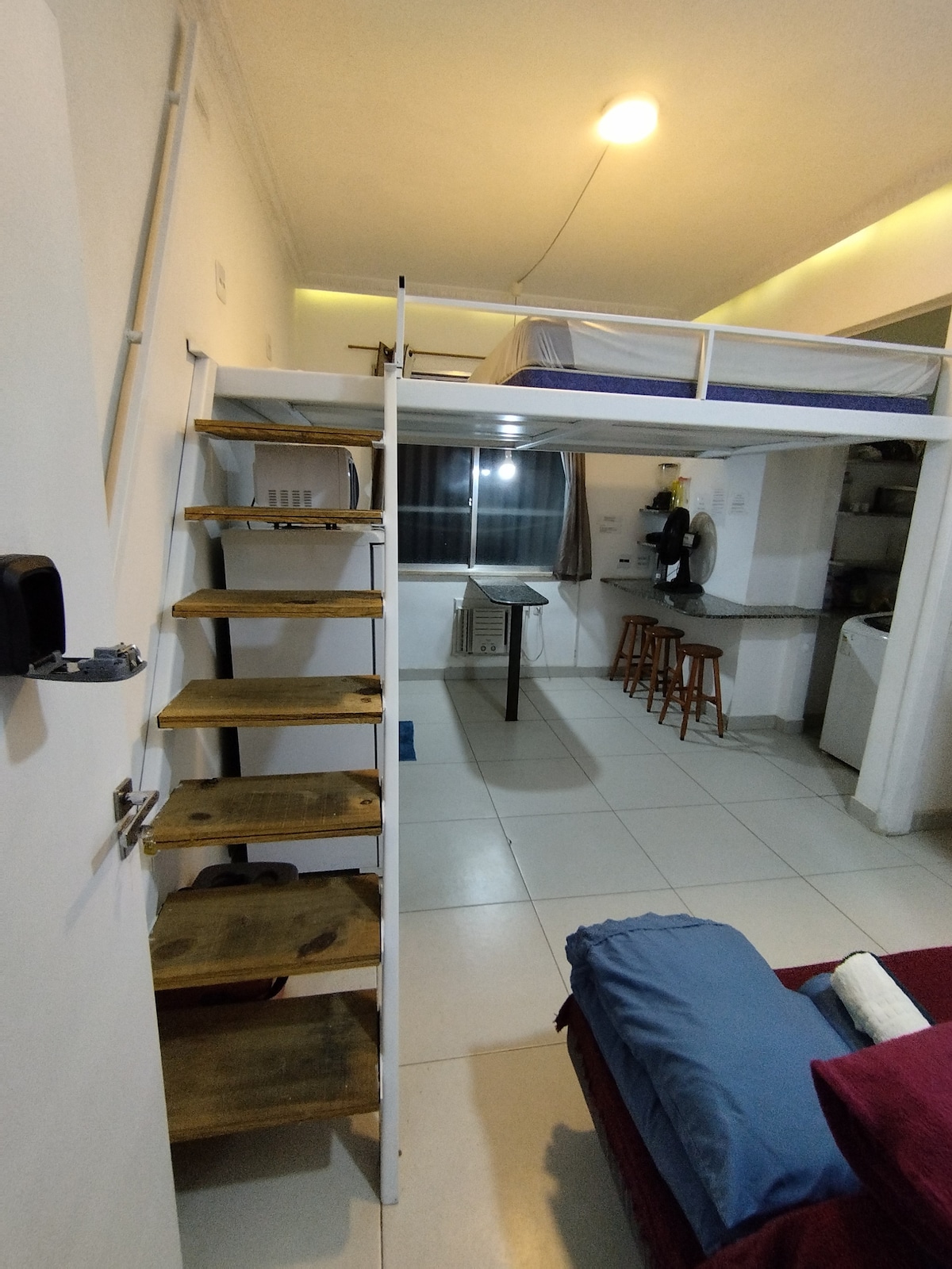 Yeni təmir edilmiş loft, səliqəli bəzədilmiş, rəqəmsal kilid, yataq otağı və qonaq otağı Amerika mətbəxi ilə inteqrasiya olunub və tam təchiz olunub. Müasir və təhlükəsiz, bu qonaqlama 24 saat konsyerj və təhlükəsizlik kameraları olan kondominiumda, Kopakabanın ən yaxşı yerlərindən birində, Təsvir və Səs Muzeyinin yanında, dənizə baxan, barlar, restoranlar, camaşırxanalar, bazarlar, banklar kimi müxtəlif xidmətlərlə əhatə olunub.